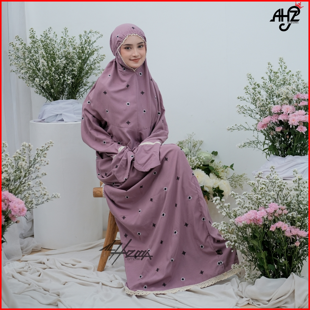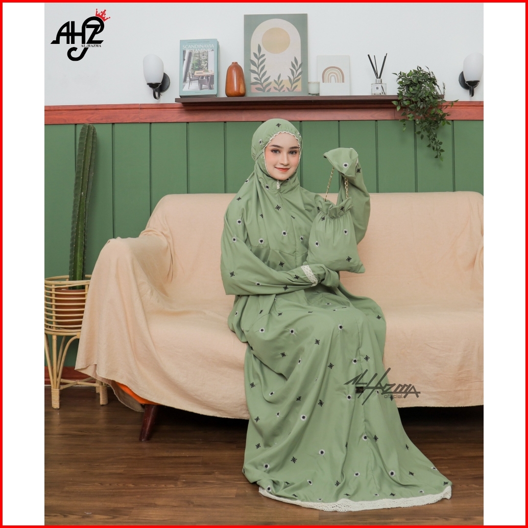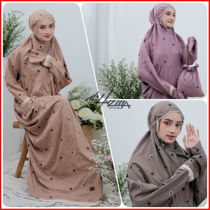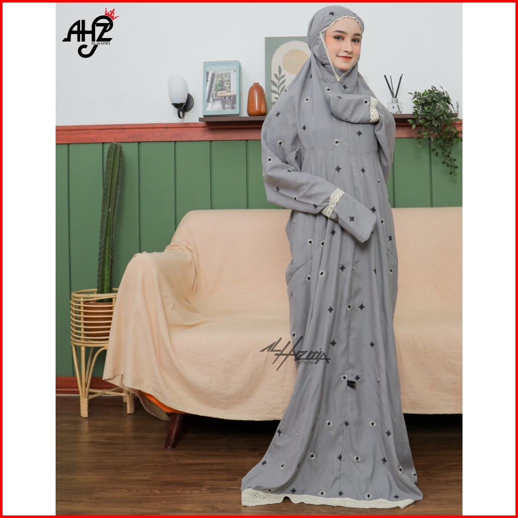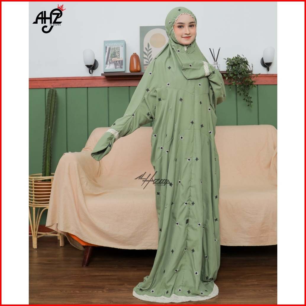 Mukena Terusan Dewasa Jumbo Bordir Zakiah Katun Mikro Premium Lajuran Santriwati