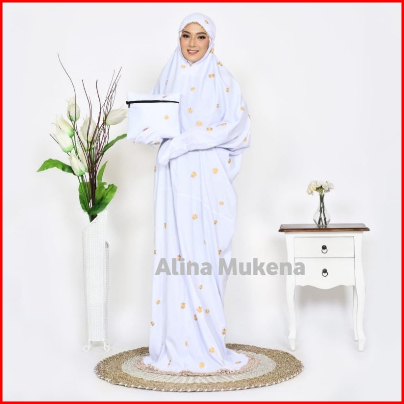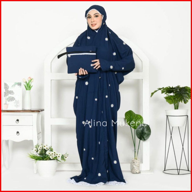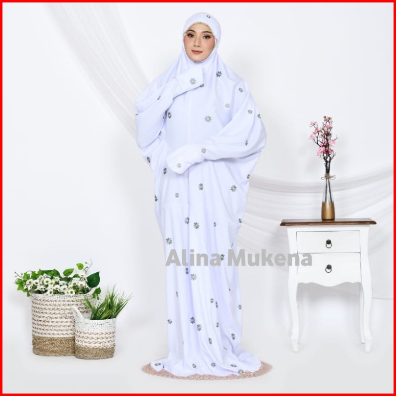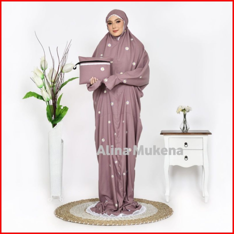 Mukena Terusan Dewasa Mukenah Lajuran Bordir Bunga Daisy Jumbo Terbaru Khas Alina Mukena
