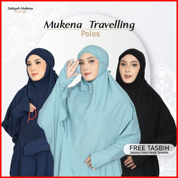Mukena Terusan Dewasa Travelling Jumbo Katun Premium Mukenah Lajuran Polos Free Tasbih