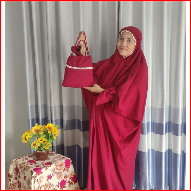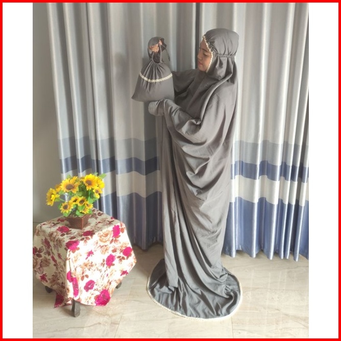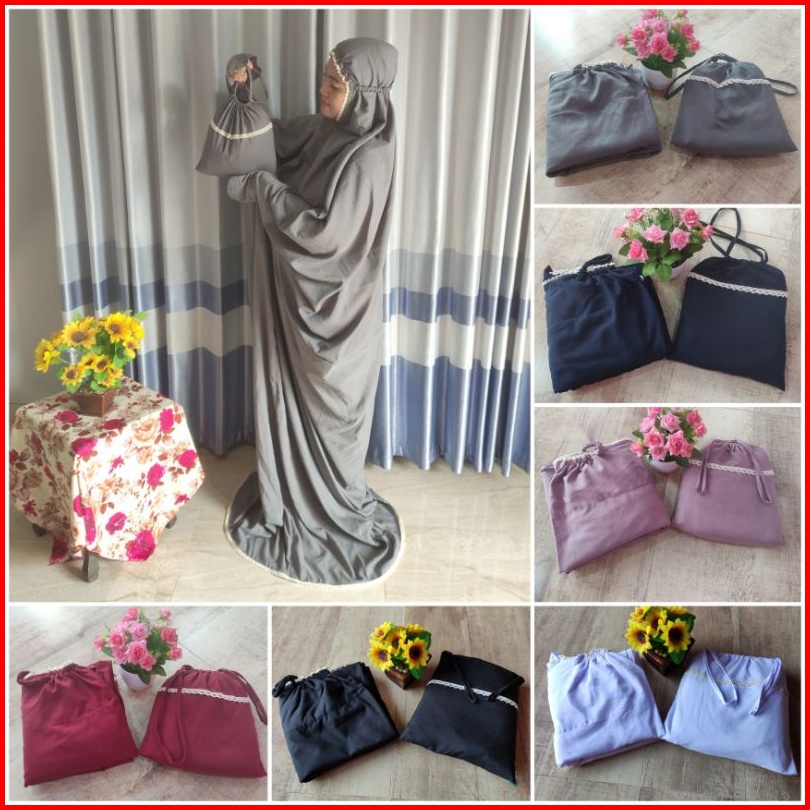 Mukena Terusan Dewasa Traveling Renda Rajut Bonus Tas