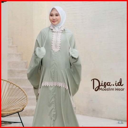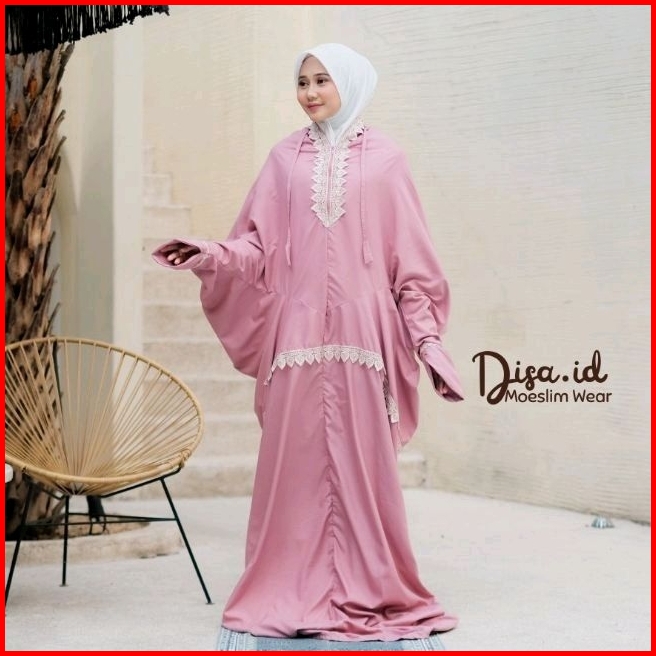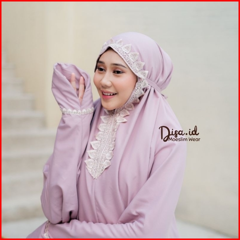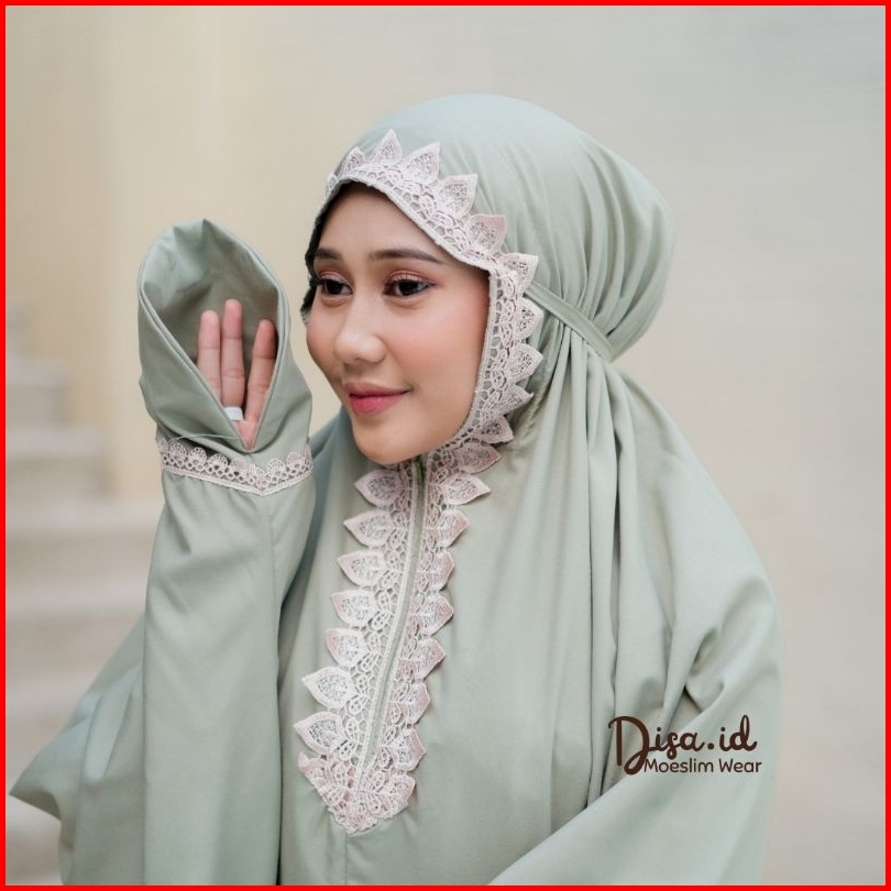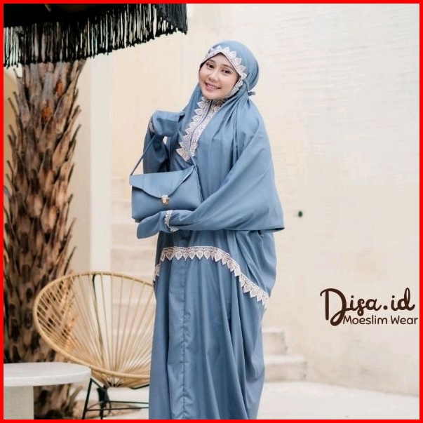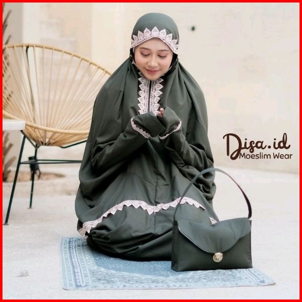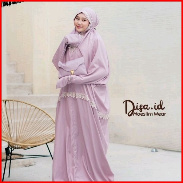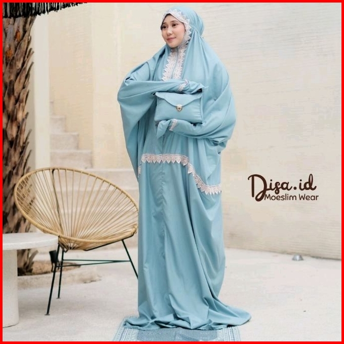 Disa.id - Mukena Terusan Traveling Lajuran Polos Aisyah Pouch Cantik 2in1 Katun Premium Signature Jumbo