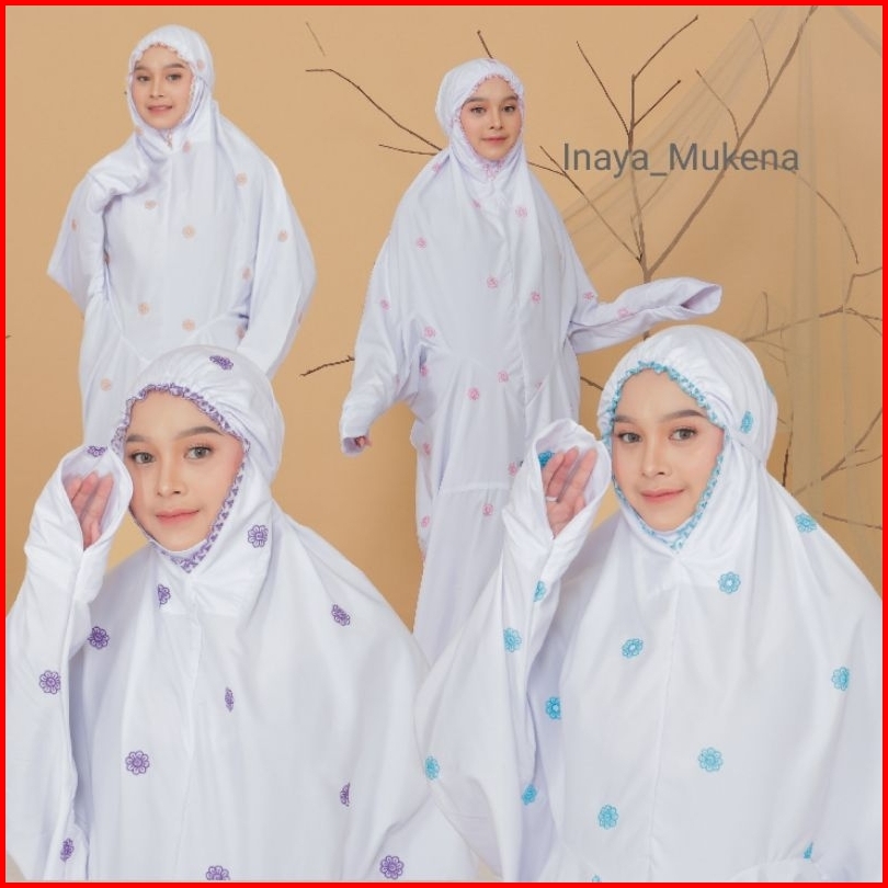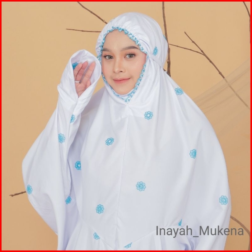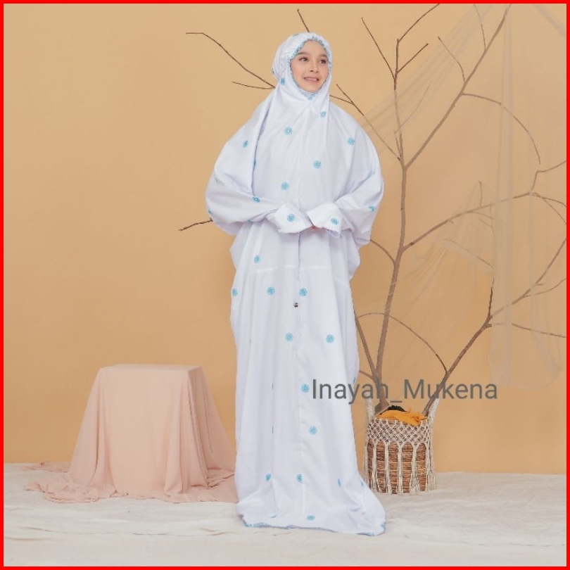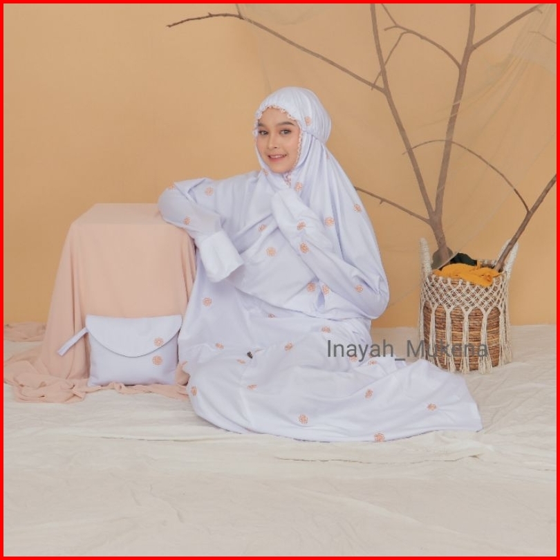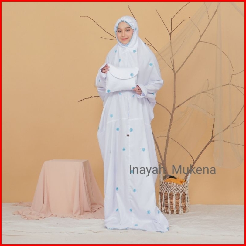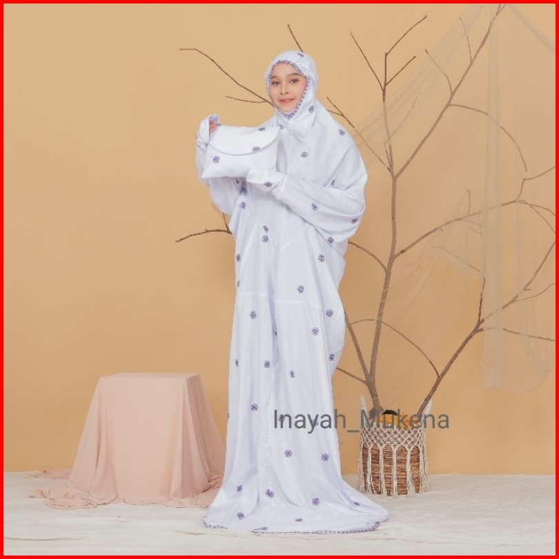 Inayah - Mukena Terusan Putih Dewasa Katun Premium Bordir Seroja