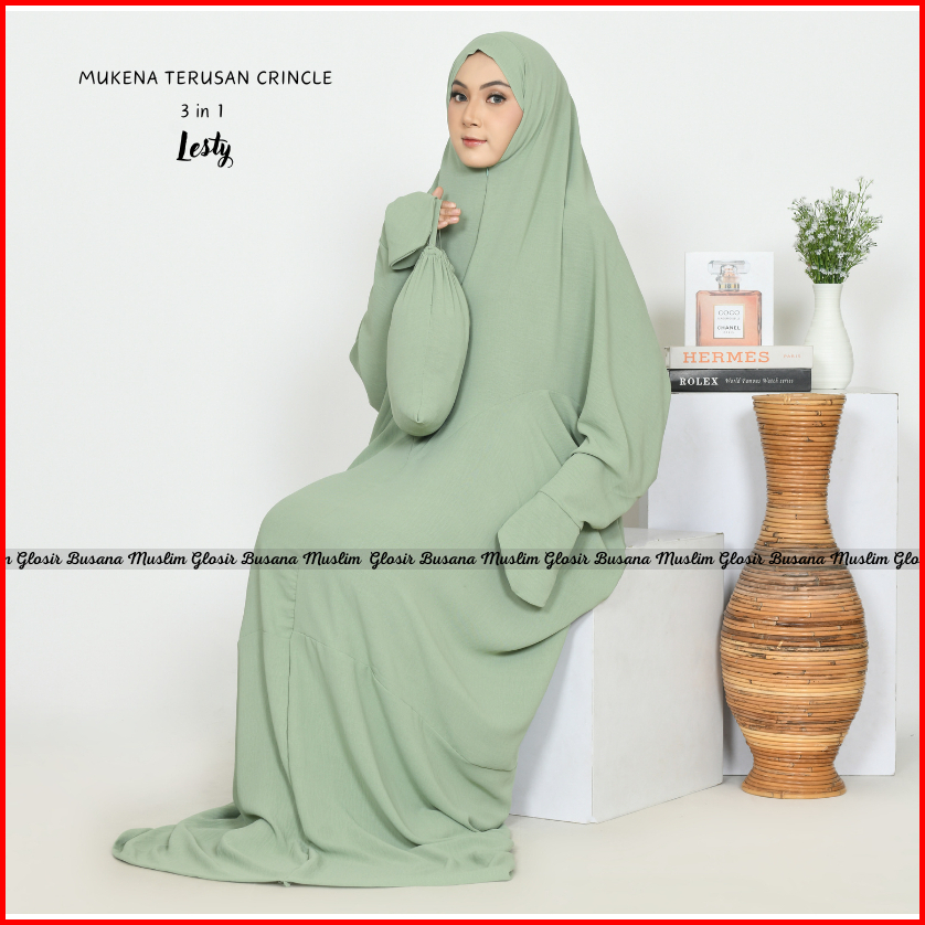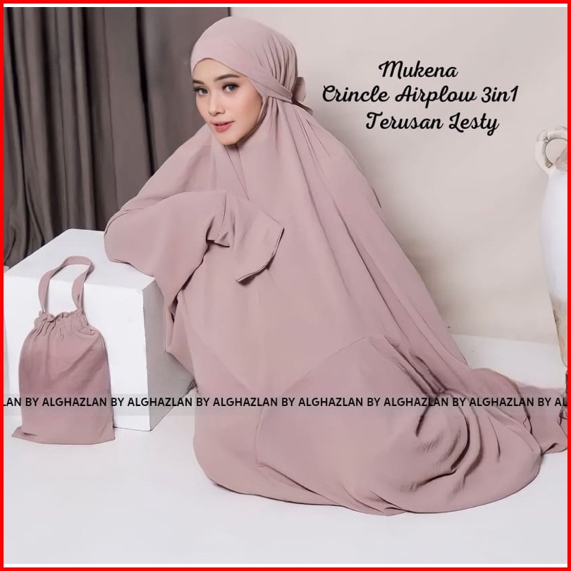 Mukena Terusan Crincle Airplow 3in1 Mukena Terusan Terbaru 2023