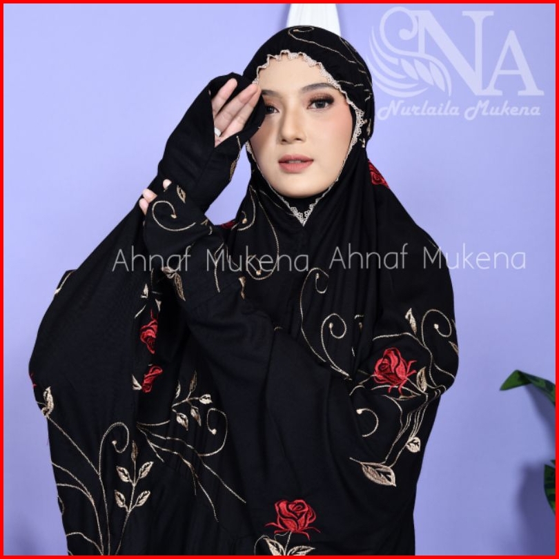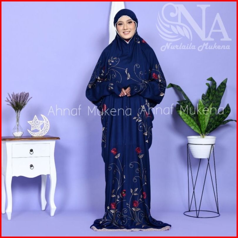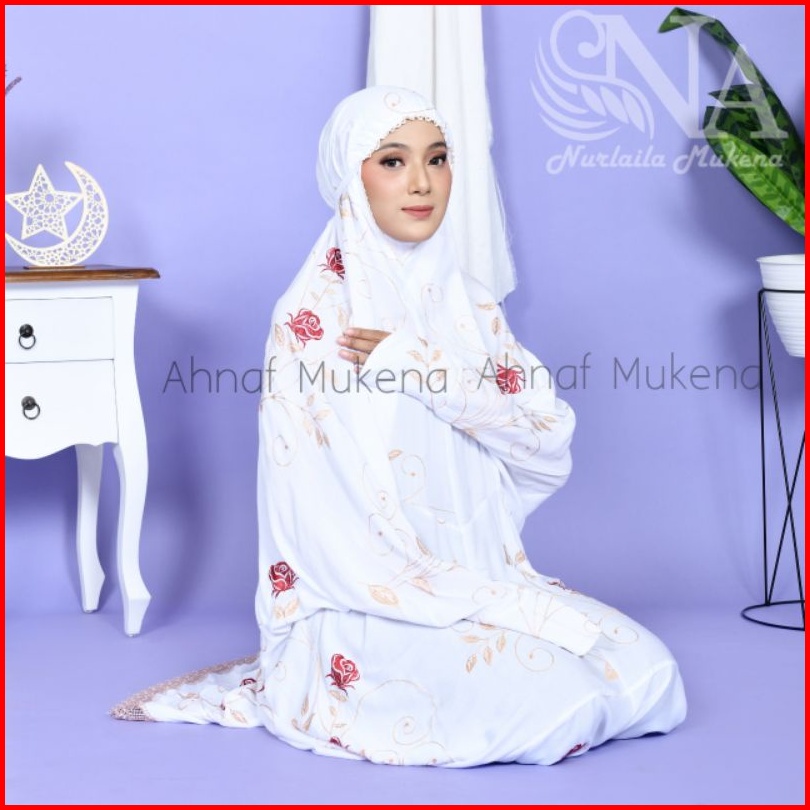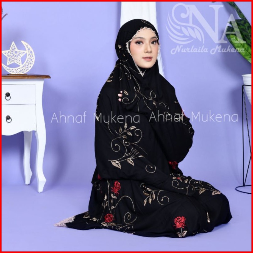 Mukena Terusan Dewasa Bordir Platinum Rose Mukenah Lajuran Katun Rayon Premium