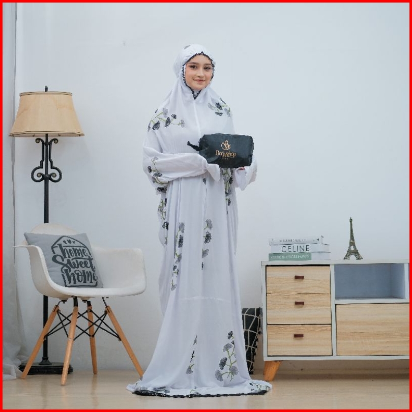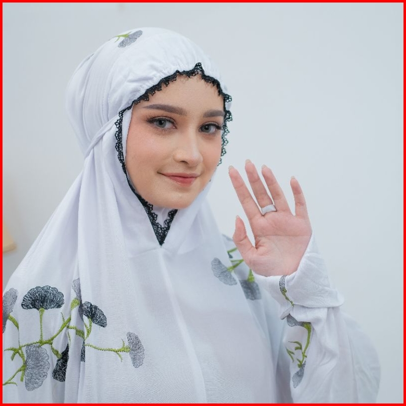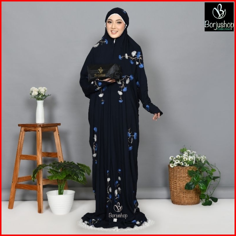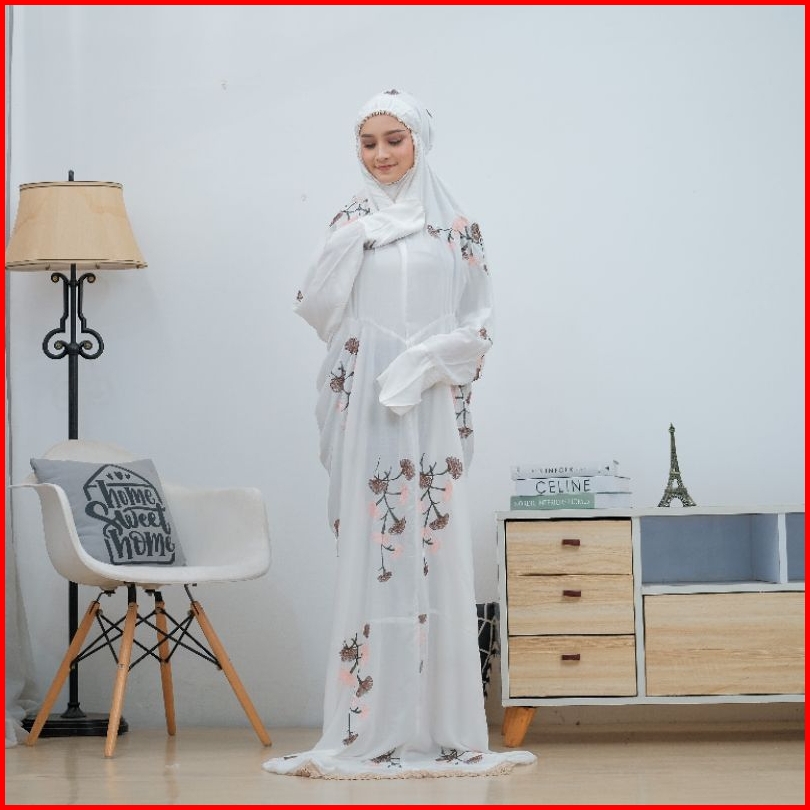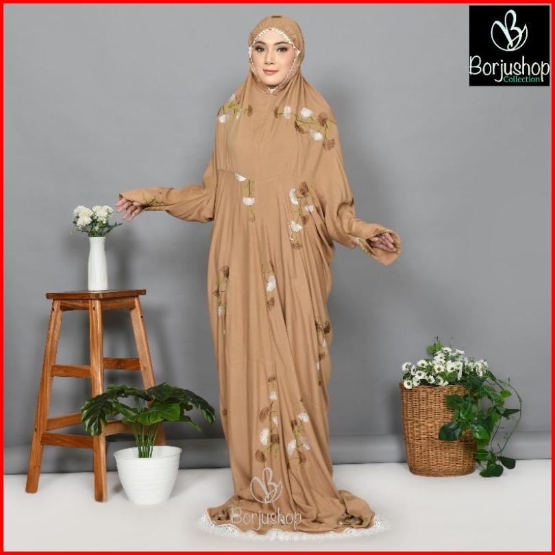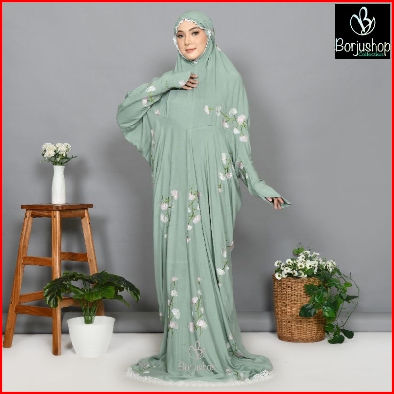 Borjushop - Mukenah Terusan Dewasa Terbaru Rayon Bordir Ginko Billova Renda Mewah Jumbo Mukenah Terusan Bordir