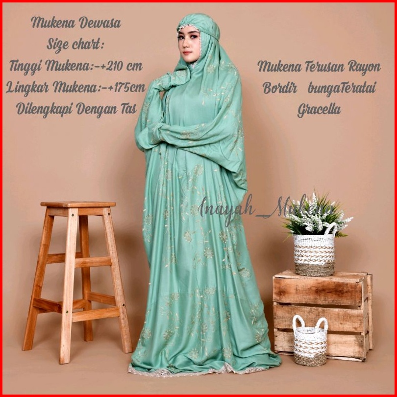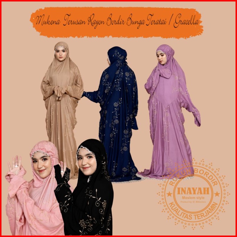 Inayah - Mukena Terusan Dewasa Gracella Bordir Bunga Teratai