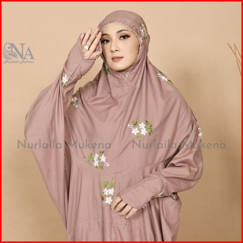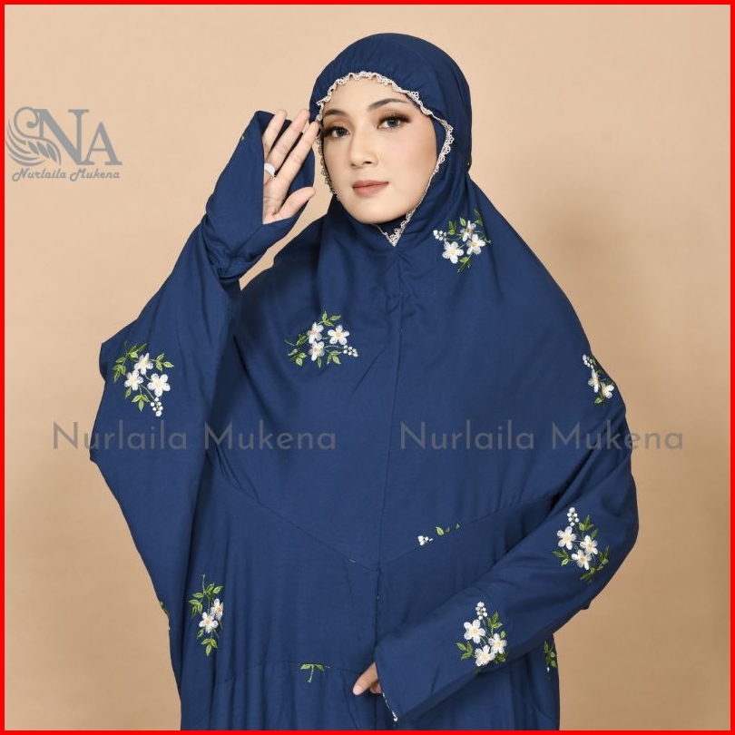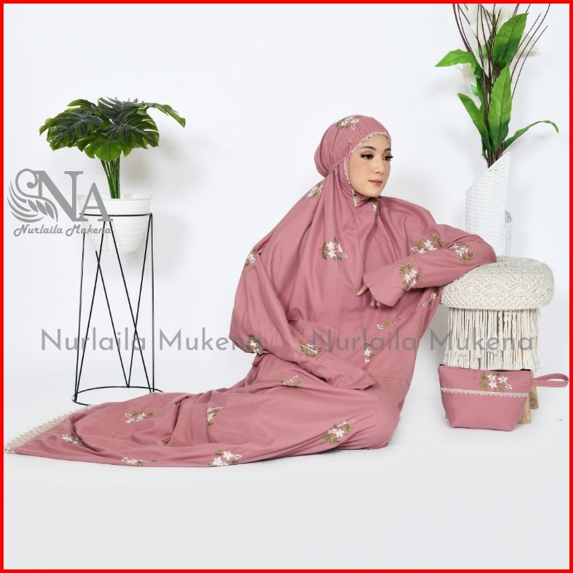 Mukena Terusan Dewasa Jumbo Bordir Cantik Bunga Melati Mukena Lajuran Dewasa