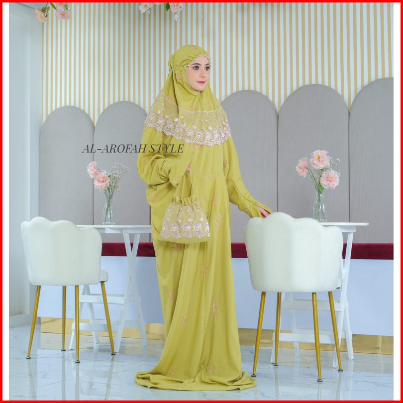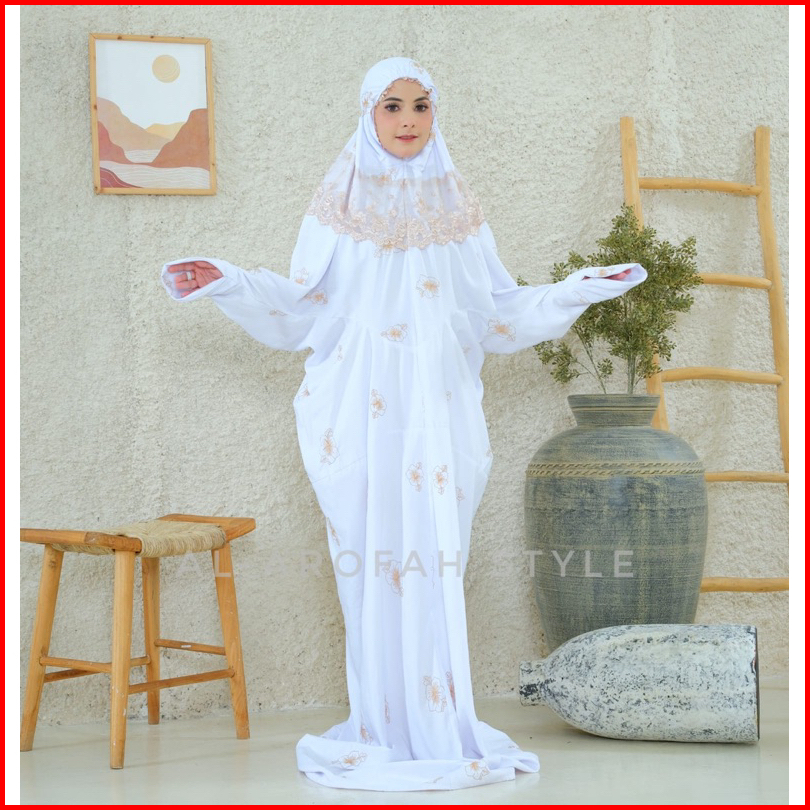 Al Arofah Mukena Terusan Dewasa Bordir Mukena Lajuran Azzura Bordir Katun Mikro Premium