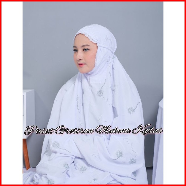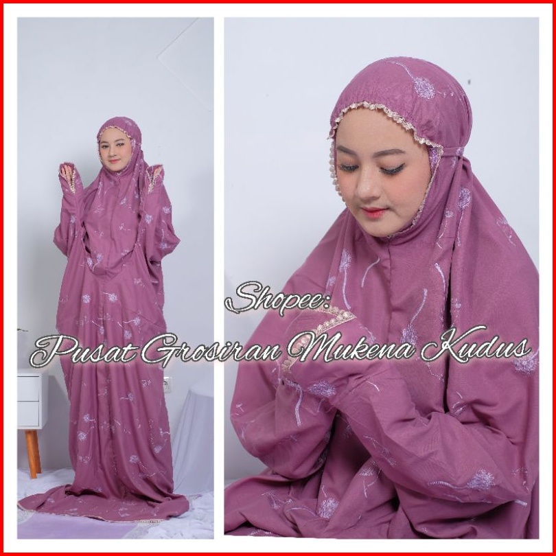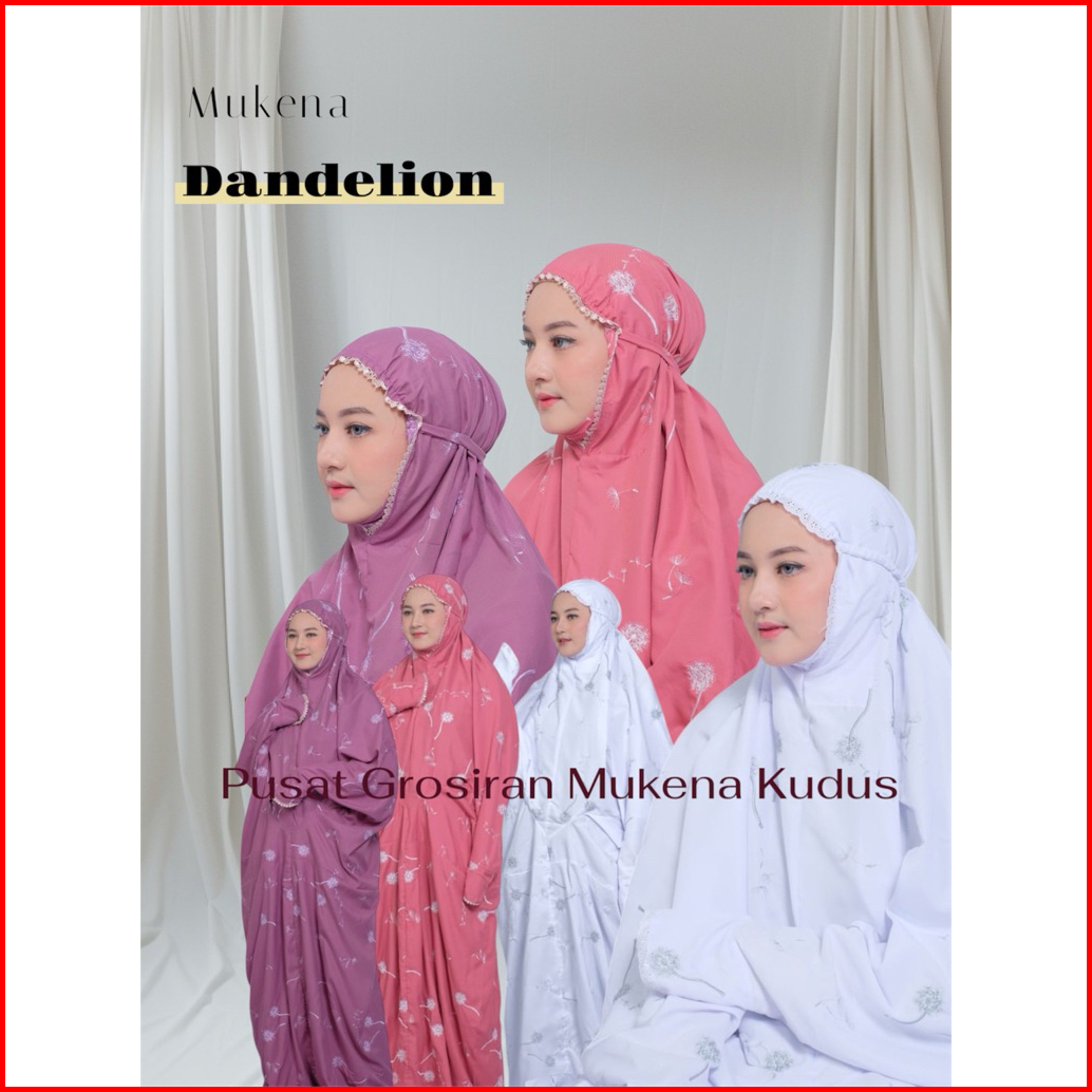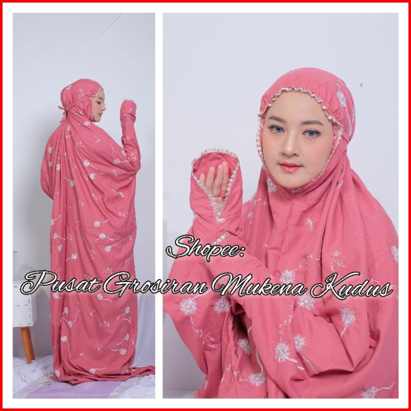 Mukena Terusan Deondelion Bordir Cantik Kerut Motif Deondelion Simpel