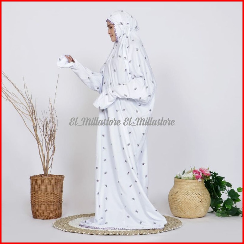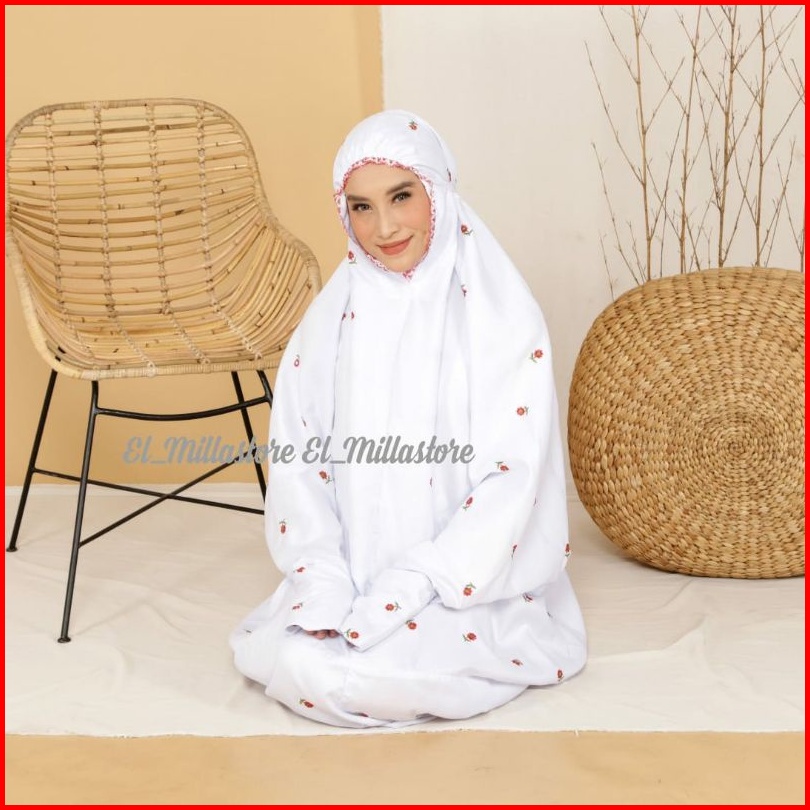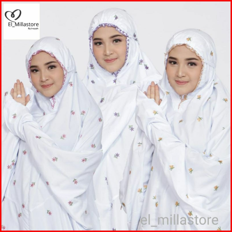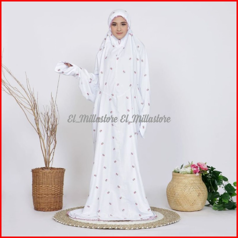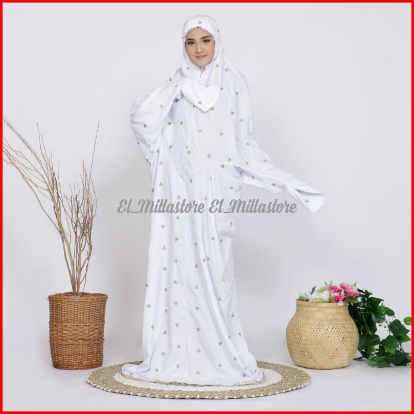 Mukena Terusan Dewasa Putih Bordir Tabur Seribu Bunga Inayah