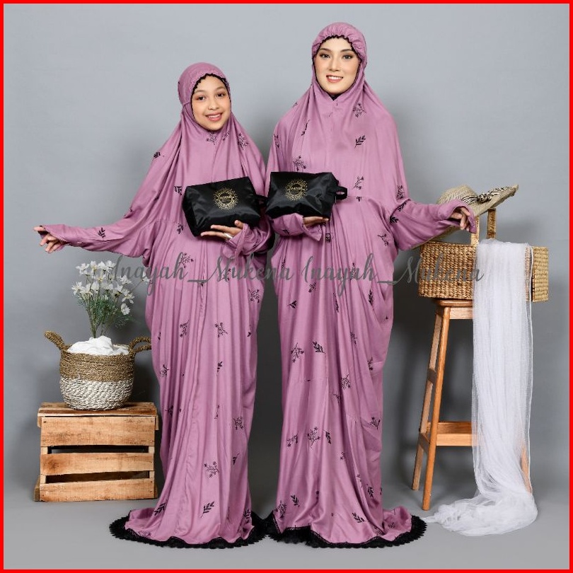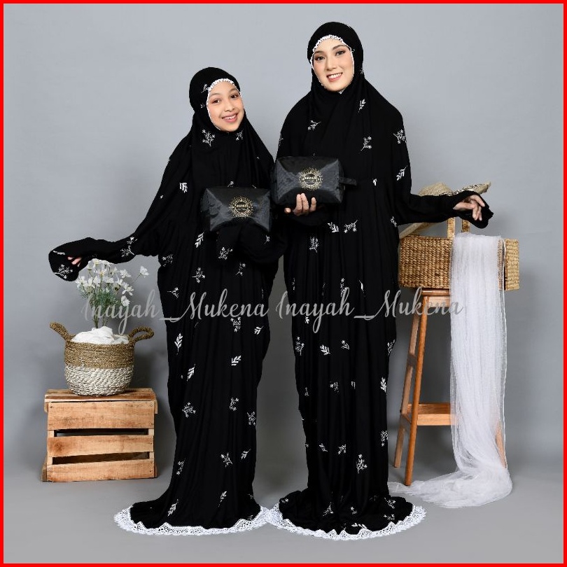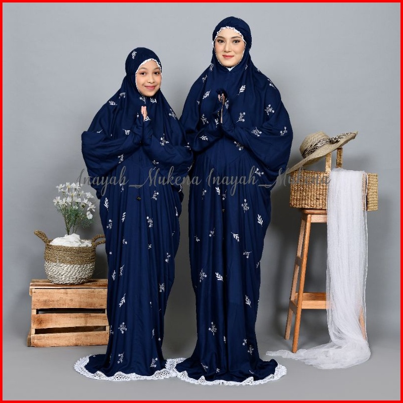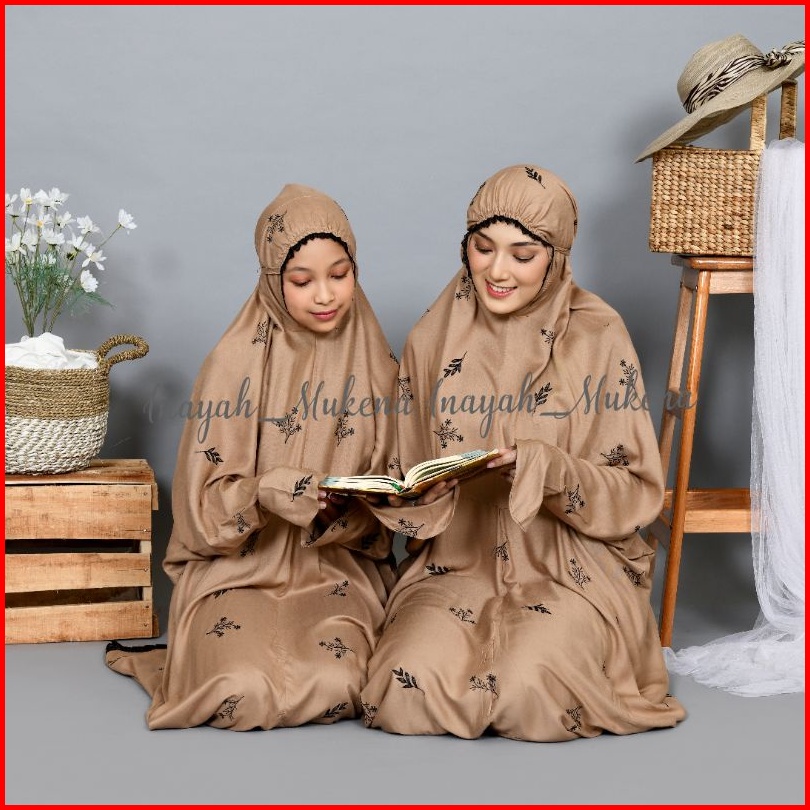 Mukena Terusan Couple Dewasa Remaja Inayah Bordir Ranting Cemara