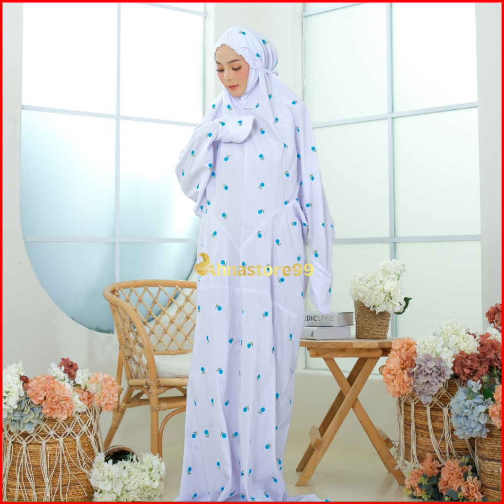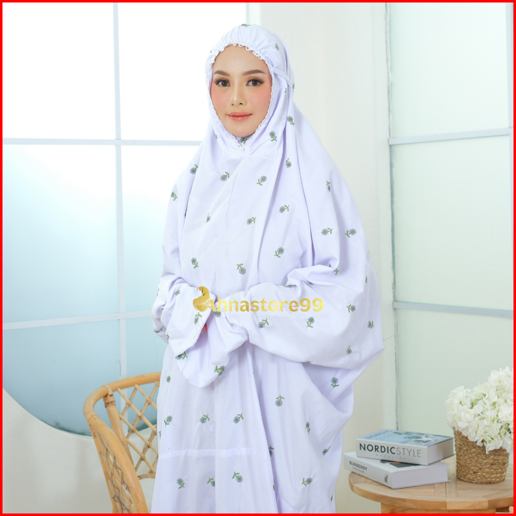 Mukena Mukenah Terusan Lajuran Remaja Dewasa Jumbo Putih