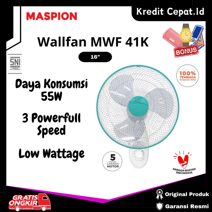 PROMO Kipas Angin Wallfan MASPION 41K Size 16" Low Wattage 55W 3 Speed Garansi Resmi Kredit Cepat.id