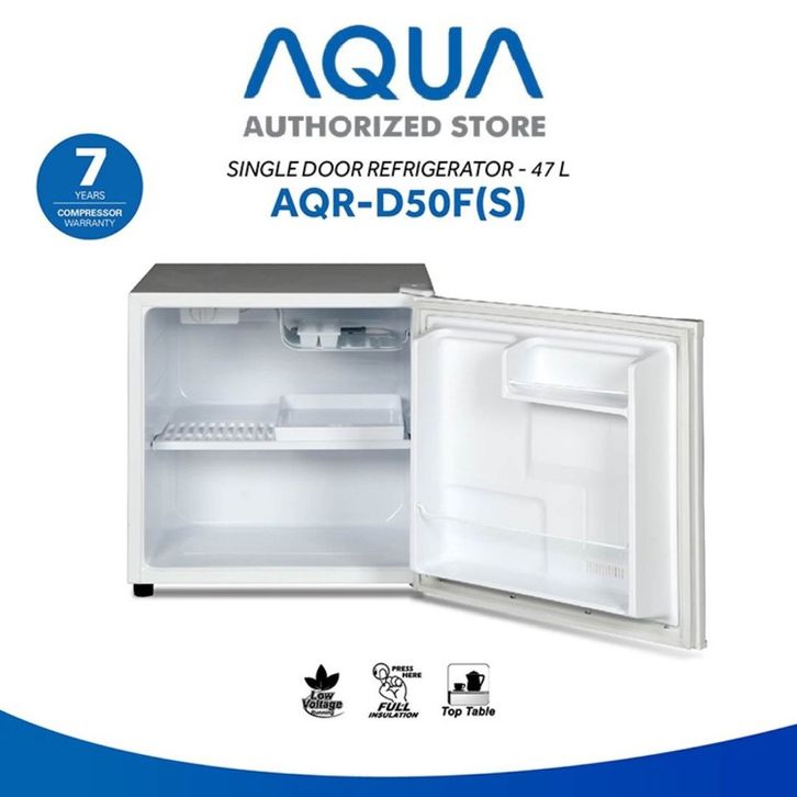 KULKAS MINI BAR AQUA AQR D50F FREEZER PORTABLE 1 PINTU 47 LITER LEMARI PENDINGIN ES KOSAN MURAH