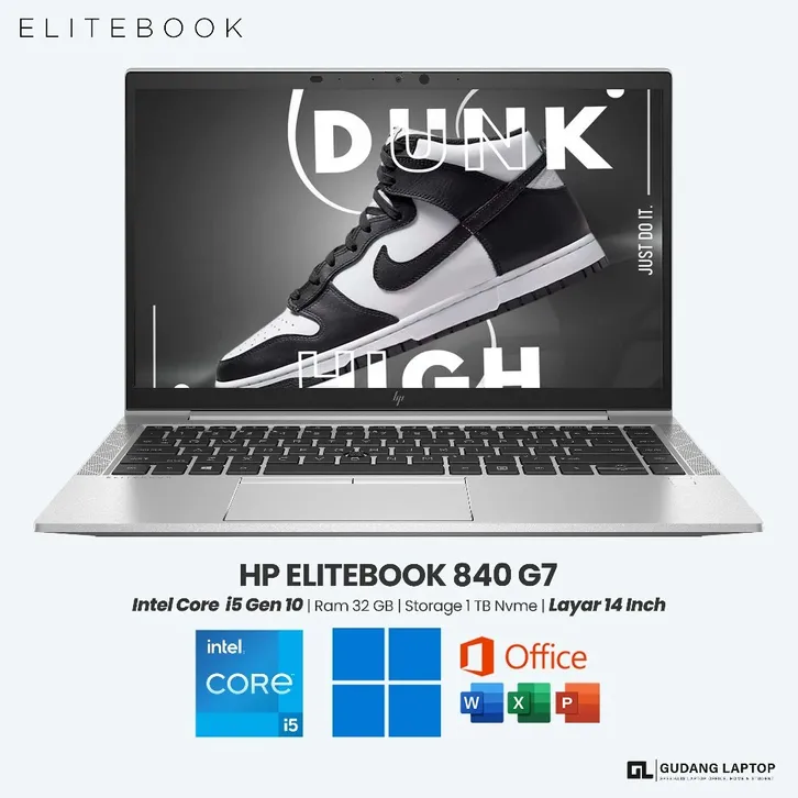 Laptop HP Elitebook 840 G7 Core i5 Gen 10 RAM 16GB SSD 1TB Layar 14"FHD Intel UHD Graphic Slim Premium Second Bergaransi