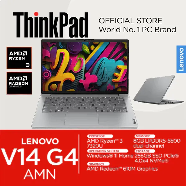 Lenovo V14 Gen 4 AMD Ryzen 3 7320U RAM 8GB SSD 256GB 14 Inch FHD Windows 11 AMN 0XID Baru Garansi Resmi