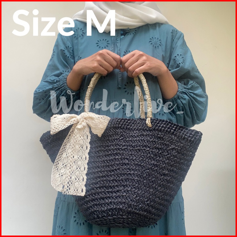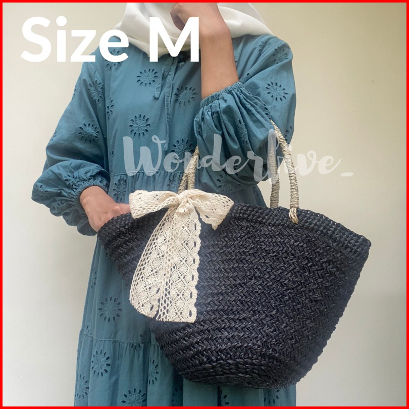 Tas Anyaman Kerajinan Pandan Mendong Bakul Etnik Wanita Tradisional Bali Natural Hitam Pita Bohemian