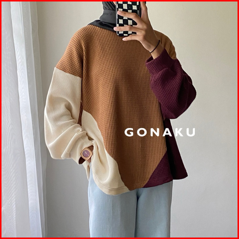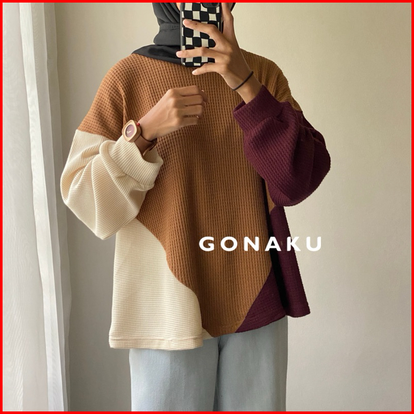 Gonaku Sydney Blouse Three Tone Oversized Top Basic Kaos Oversized Kaos Oblong Blouse Bigsize Blouse Knit Atasan Wanita