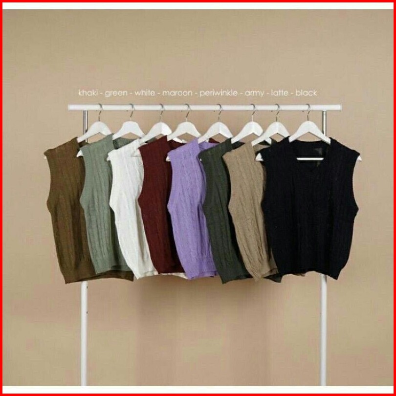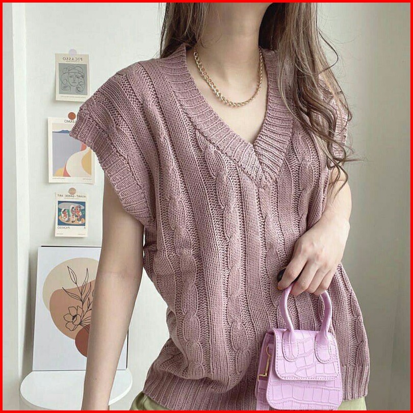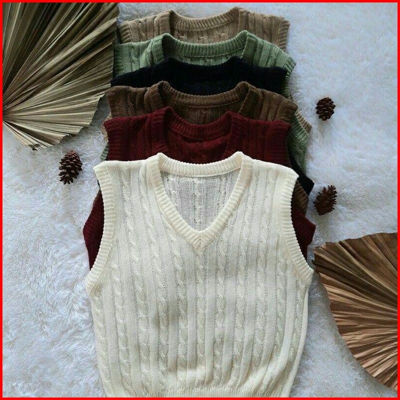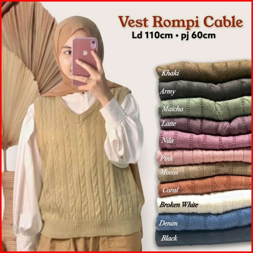 Delmi Lolla Vest Cable Ulir Premium Rompi Rajut Outer Korea