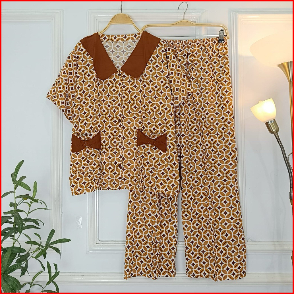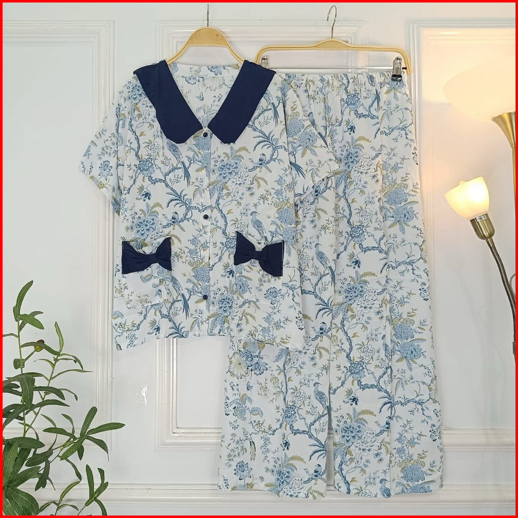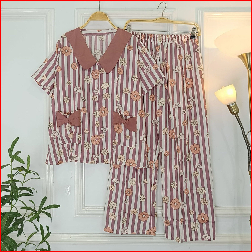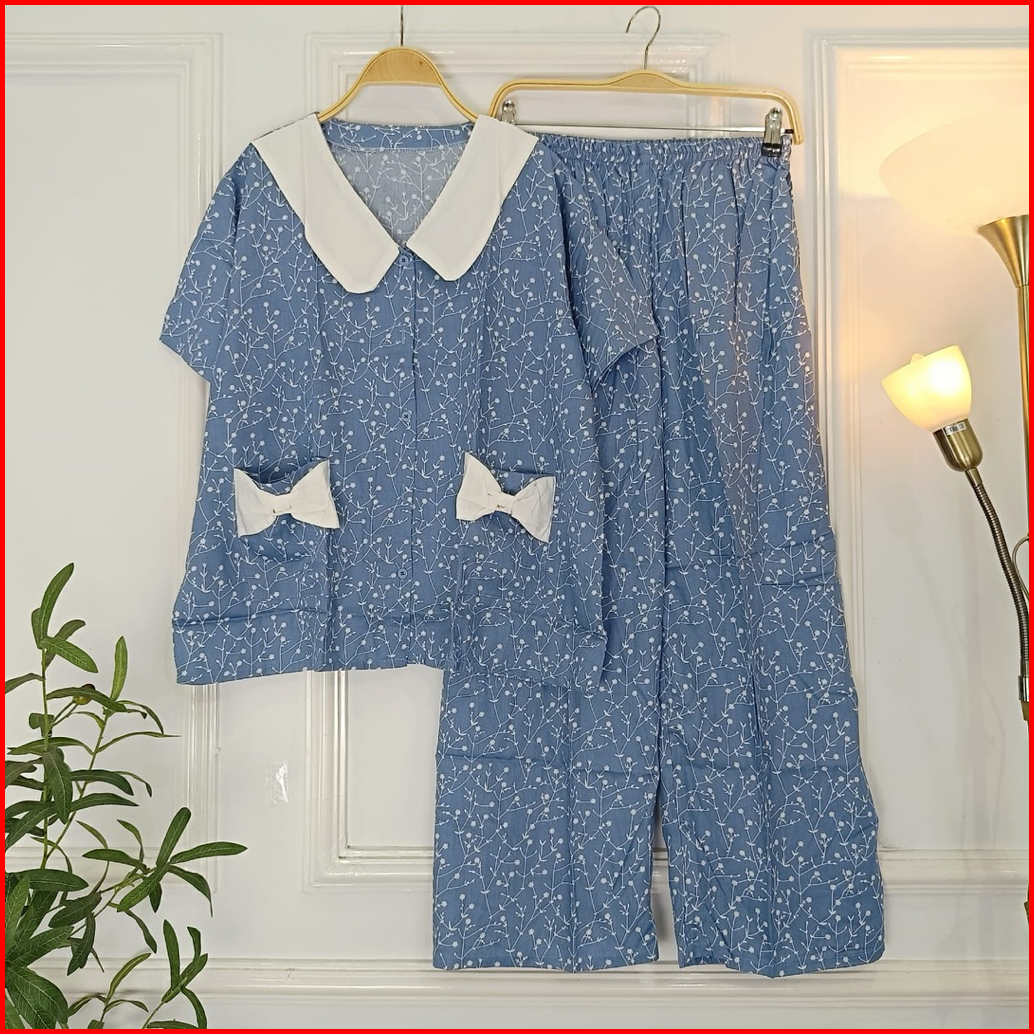 Set Ribbon Ziva Piyama Kancing Busui Baju Tidur Set Pajamas Lengan Pendek Celana Panjang Premium Pakaian Tidur Wanita De