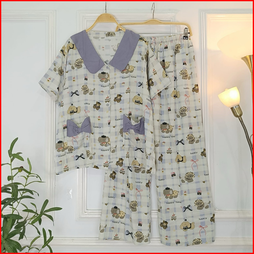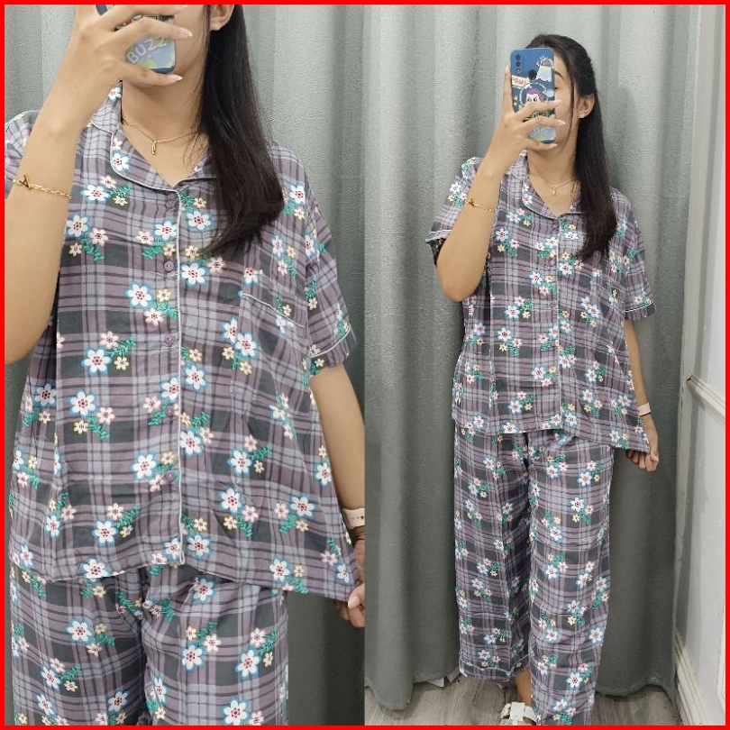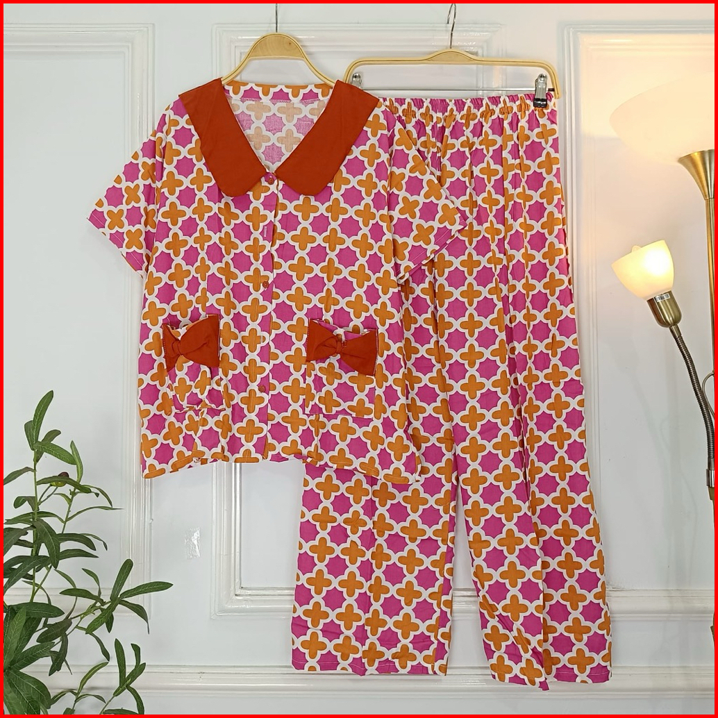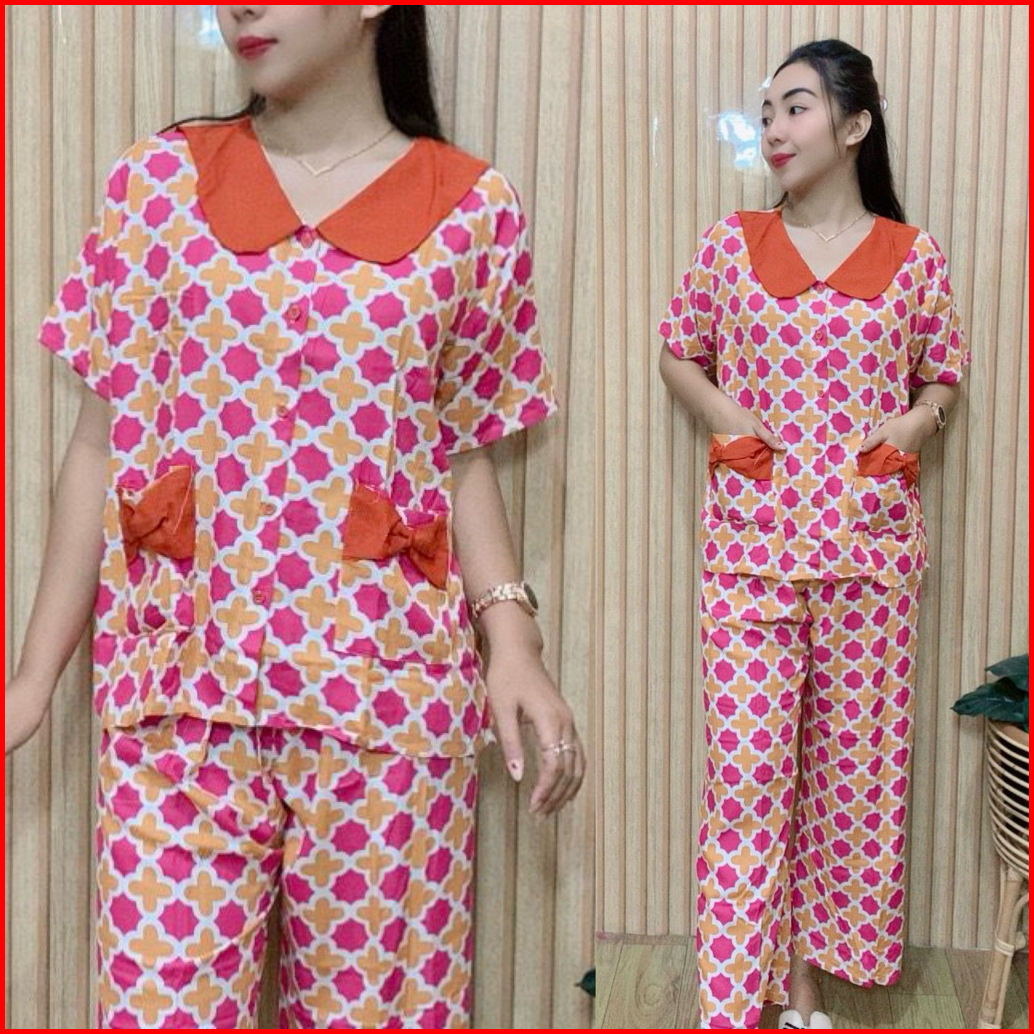 Set Ribbon Ziva Piyama Kancing Busui Baju Tidur Set Pajamas Lengan Pendek Celana Panjang Premium Pakaian Tidur Wanita De