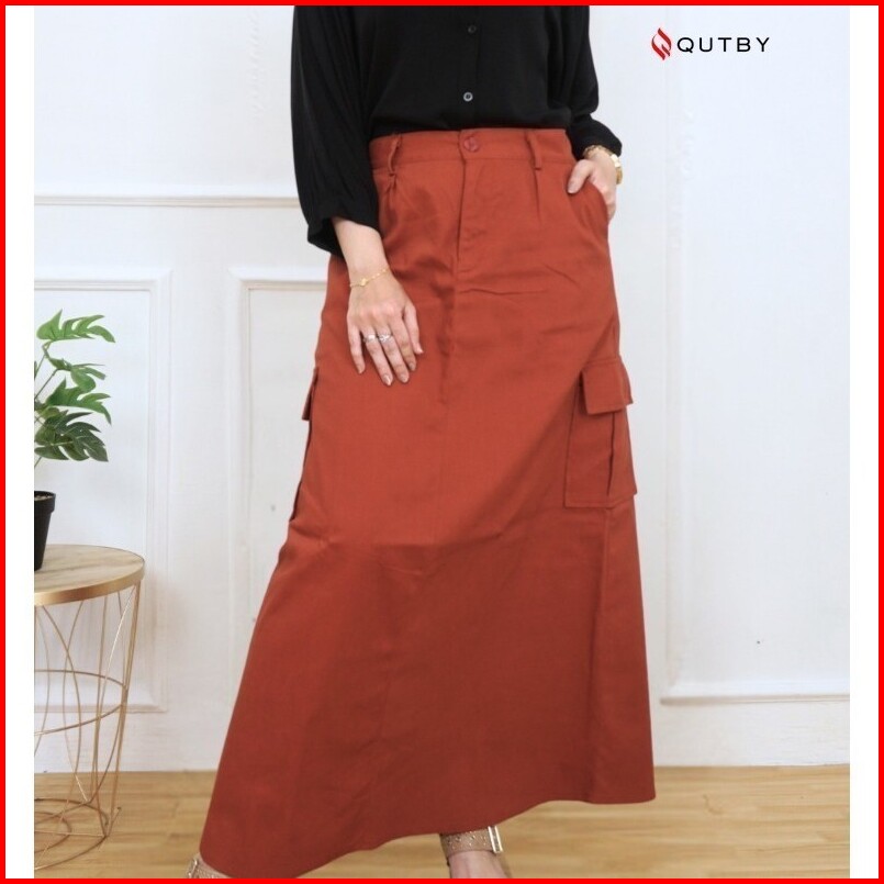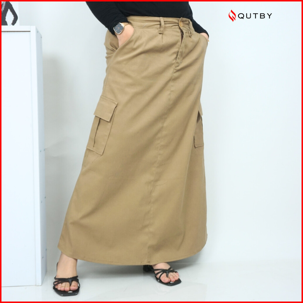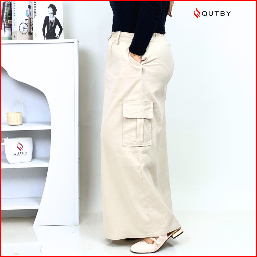 Qutby - Rok Cargo A-line Wanita Katun Twill Premium