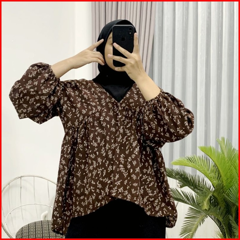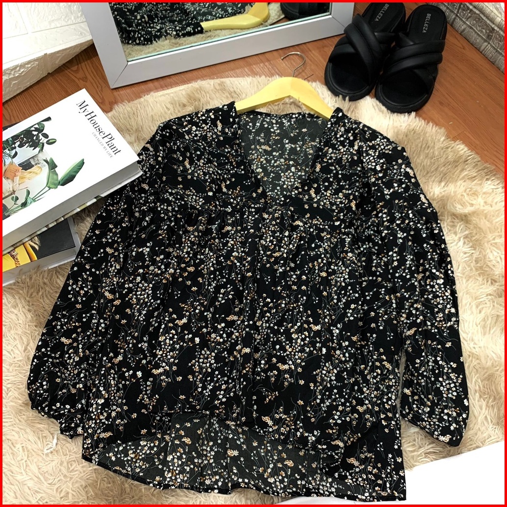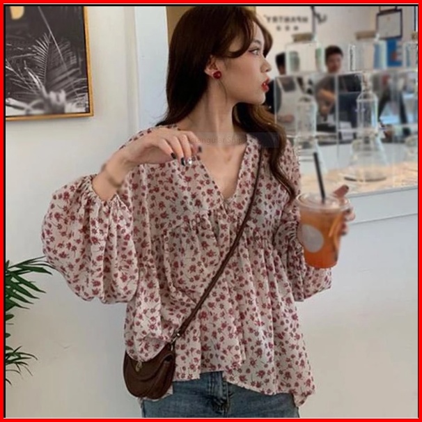 V Blouse Flower Korean Style Vintage Floral Blouse Motif Bunga Korea Olla Sesa Blouse