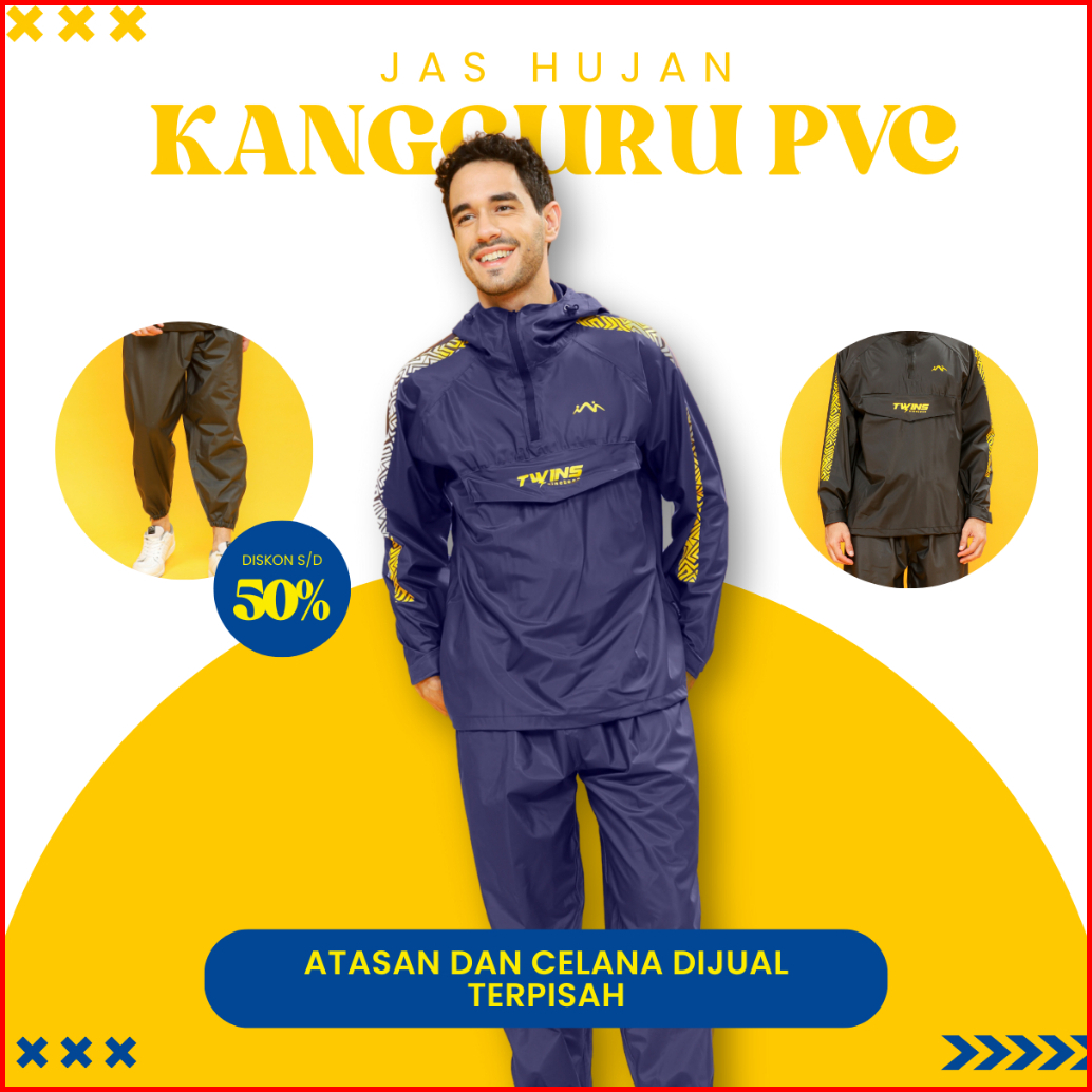 Jas Hujan Saku Kangguru Pvc Atasan Bawahan Dewasa Pria Dan Wanita Zipper
