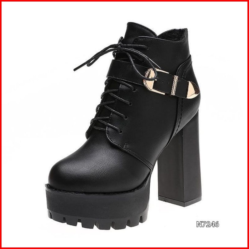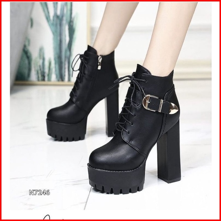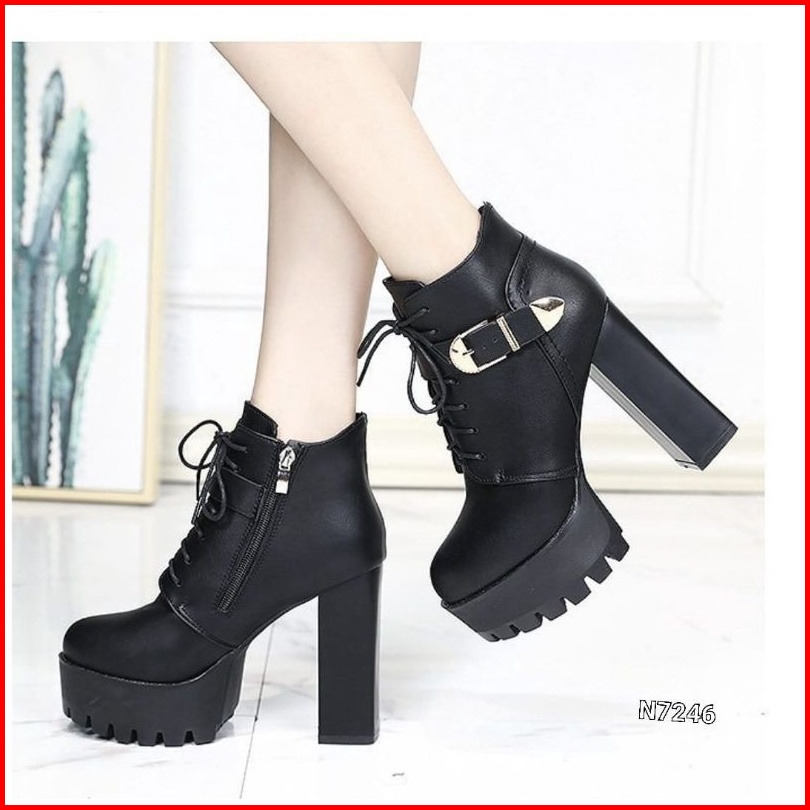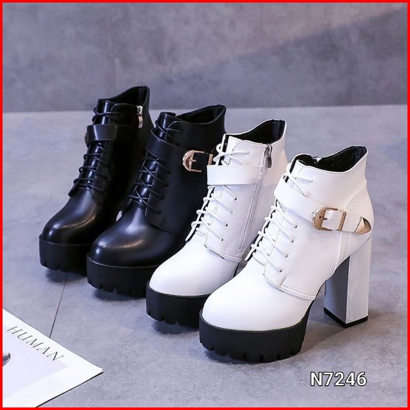 Ada Warna Putih Ya Guys..boots High Block Canveda Korea Shoes N7246