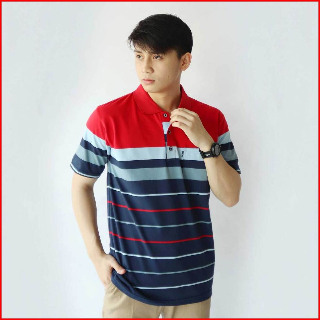 Liso Wear - Kaos Kerah Pria Stripe Engineering Kaos Kerah Salur Lengan Pendek Kd 7886
