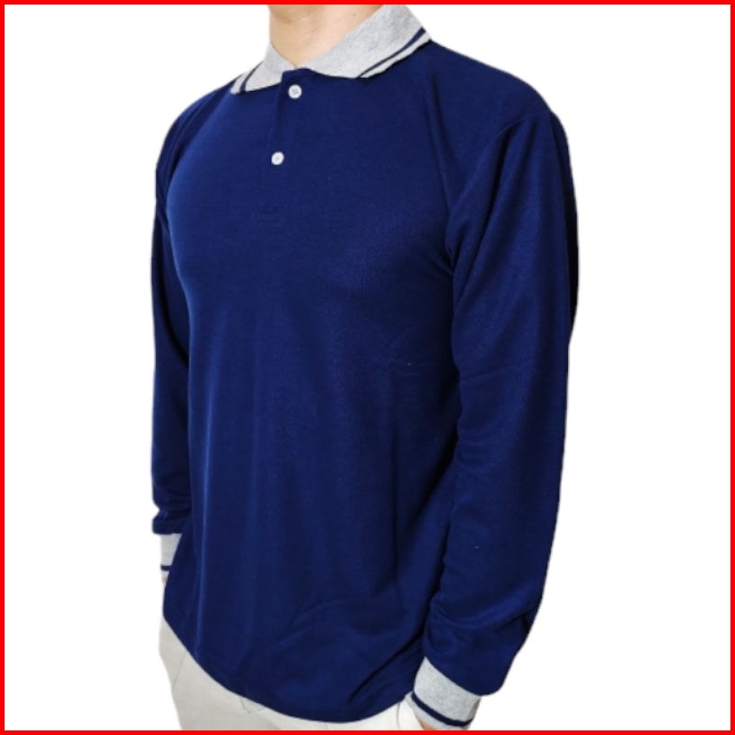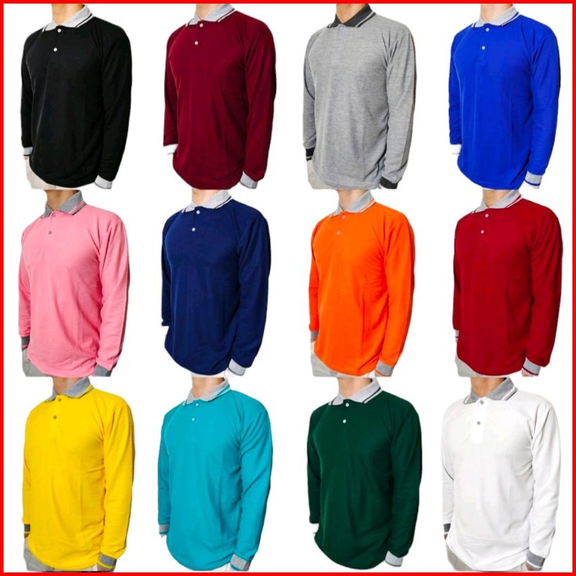 Kaos Polo Shirt Kerah Polo Kerah Lakos Polos Lengan Panjang Size M L Xl Xxl Xxxl