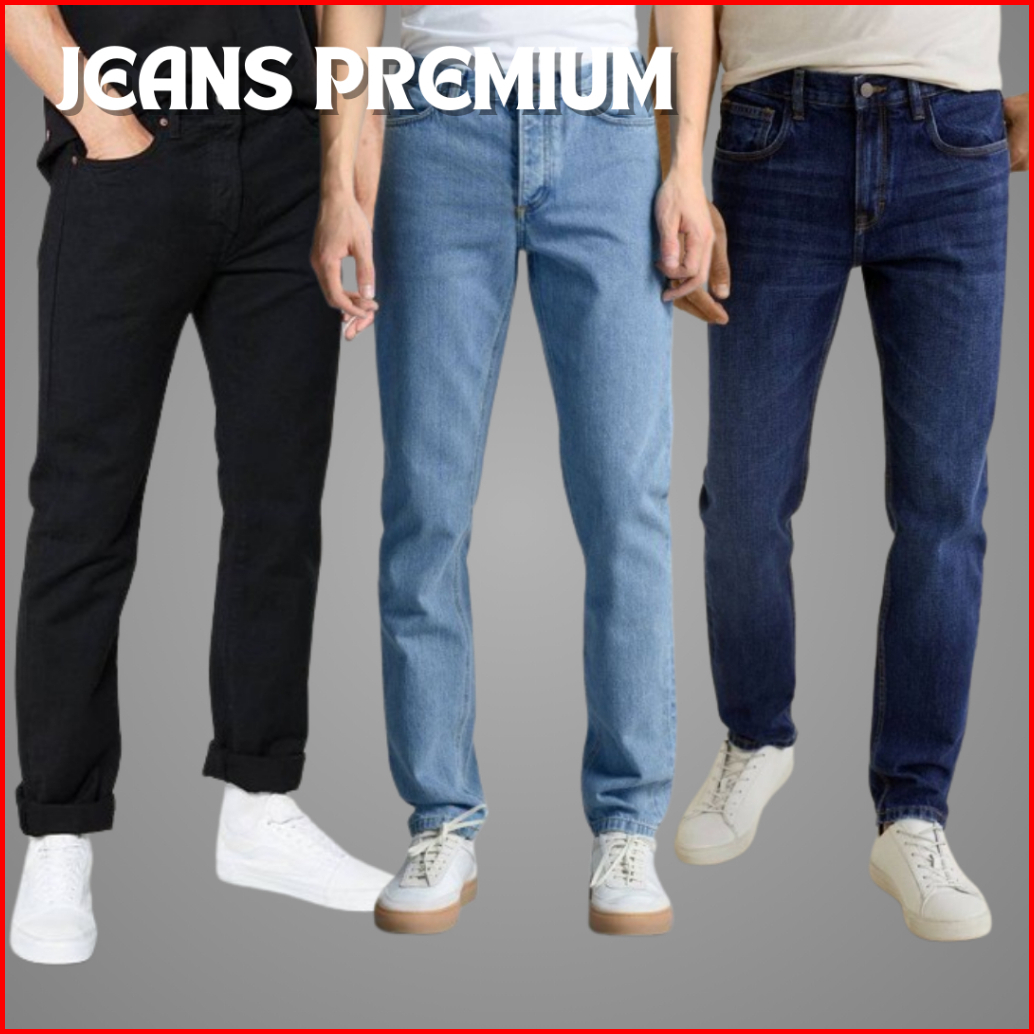 Celana Jeans Pria Standar Reguler Original 100 Hitam Biru Muda Navy Size 27-38