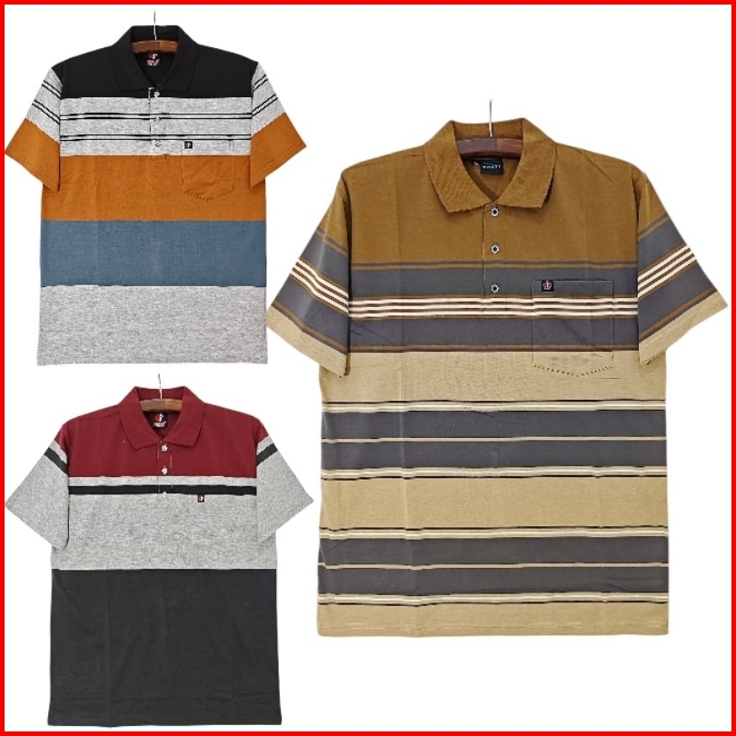 Kaos Kerah Salur Saku Pria Dewasa Lengan Pendek Afada Allsize Xl