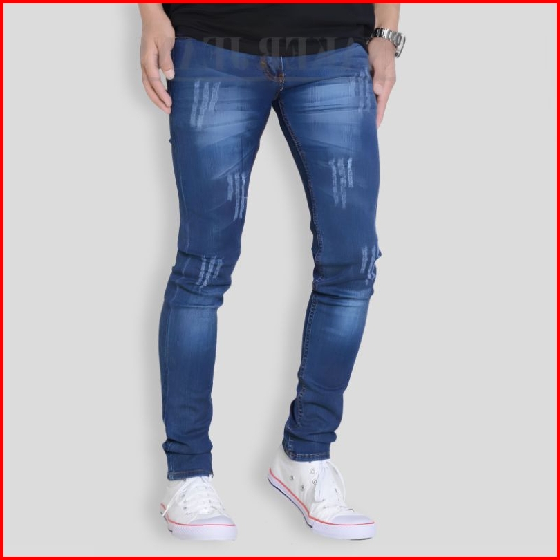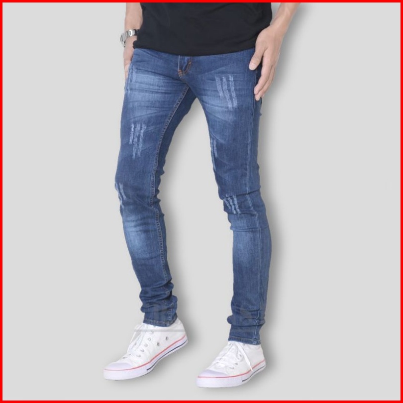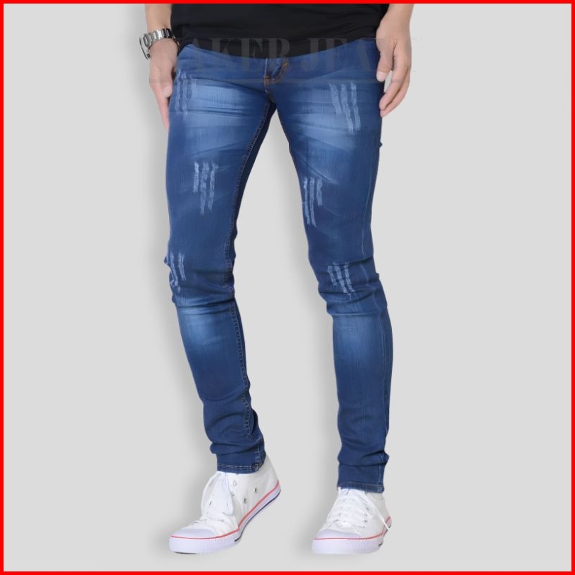 Celana Jeans Pria Sobek Lutut Tidak Tembus Ripped Robek Panjang Distro Original Ukuran 27 - 34 Model Ngaret Pensil Slimf