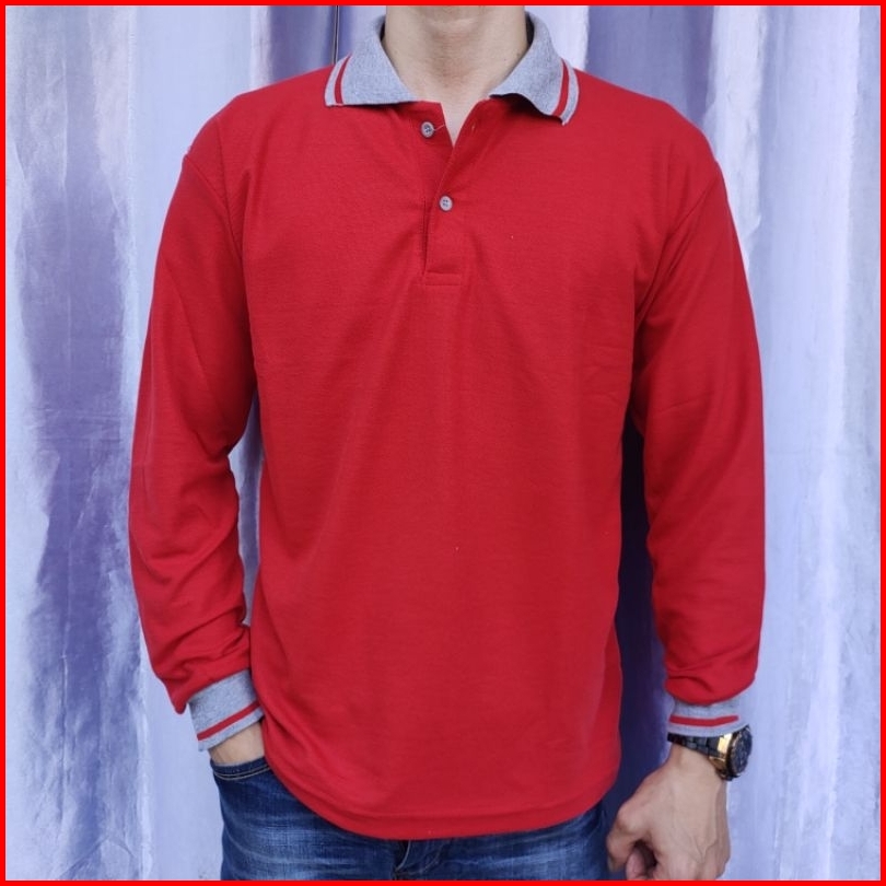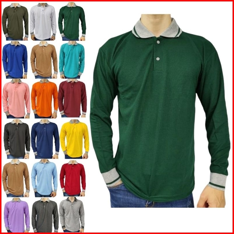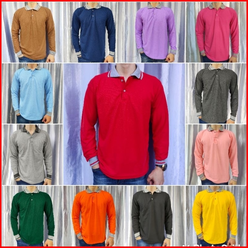 Kaos Kerah Polos Pria Wanita Dewasa Kerah Polo Lengan Panjang Uk M L Xl Xxl Xxxl