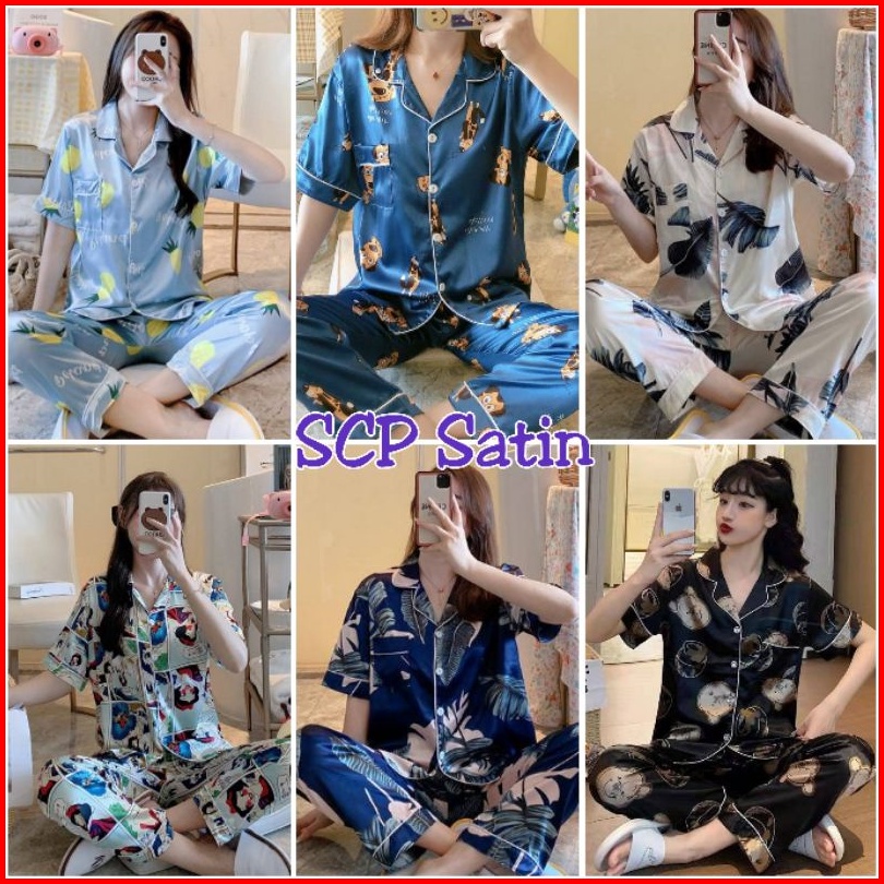 Piyama Baju Tidur Wanita Cp Satin Import Scp