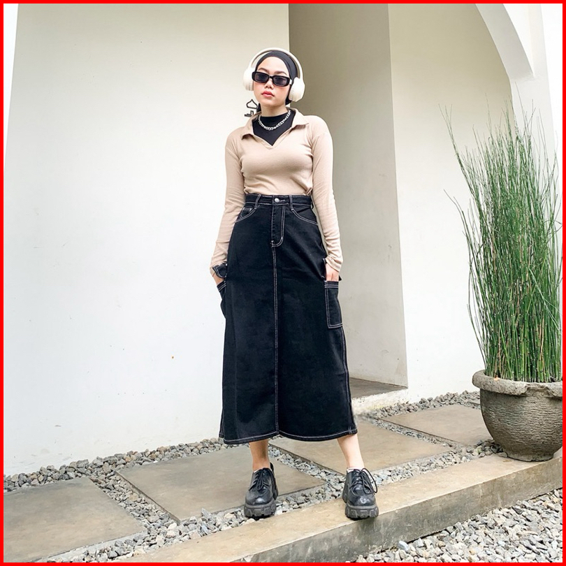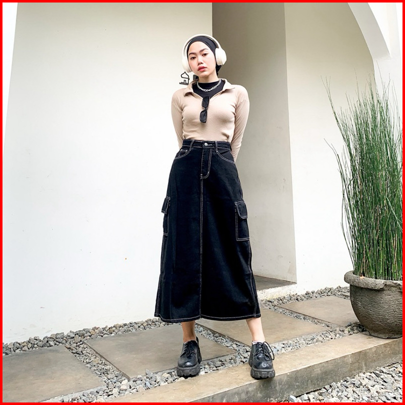 Thegirlhouse - Highwaist Rok Jeans Cargo Maudy Black