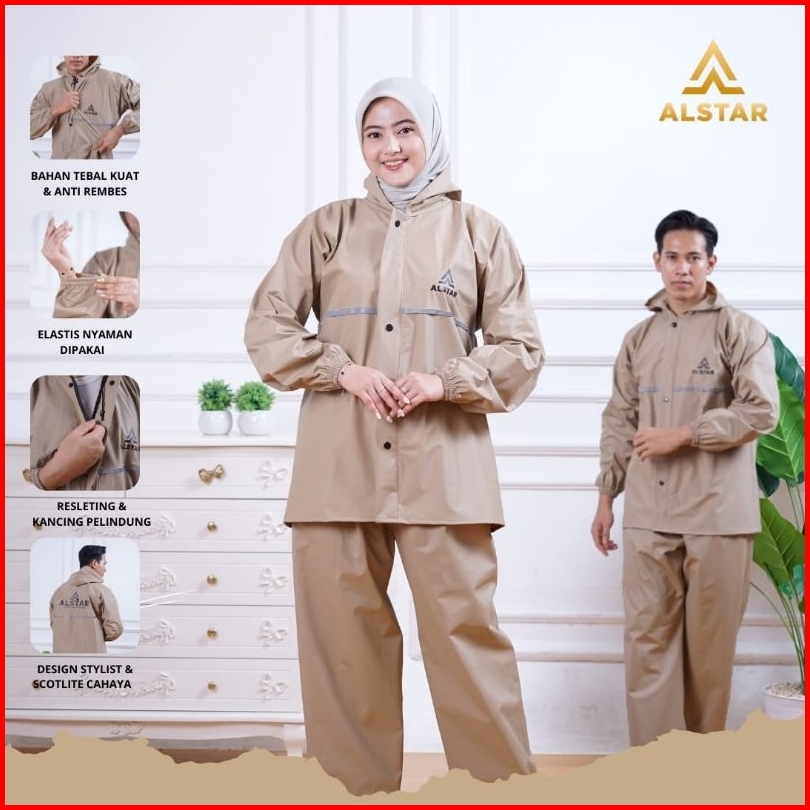 Jas Hujan Raincoat Mantel Pria Wanita Setelan Celana Anti Rembes By Alstar