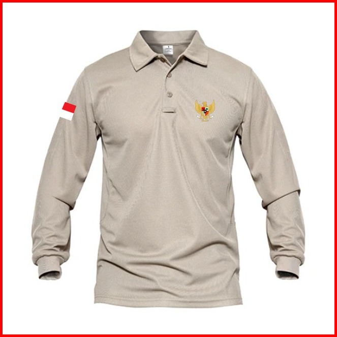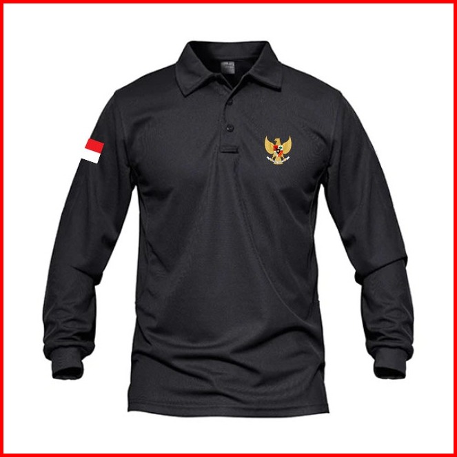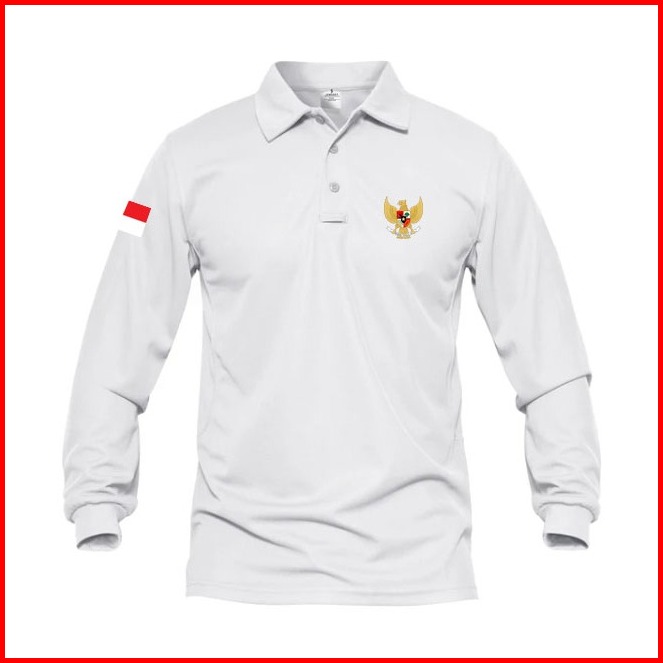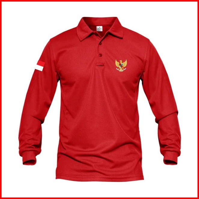 Jemssky - Kaos Polo Shirt Pria Kerah Lengan Panjang Garuda Merah Putih Sablon Print Quality