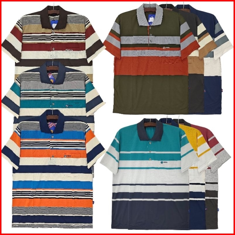 Kaos Kerah Salur Saku Pria Dewasa Lengan Pendek Adriano Size Xxl