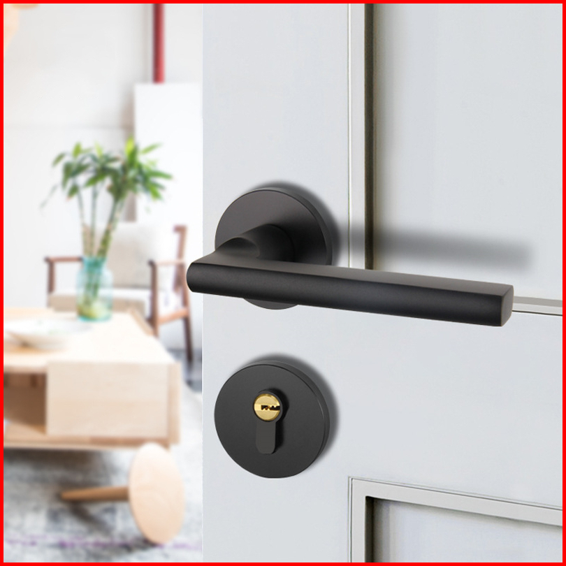 Gagang Pintu Gaya Eropa Hitam Full Set Kunci Pintu Premium Door Lock