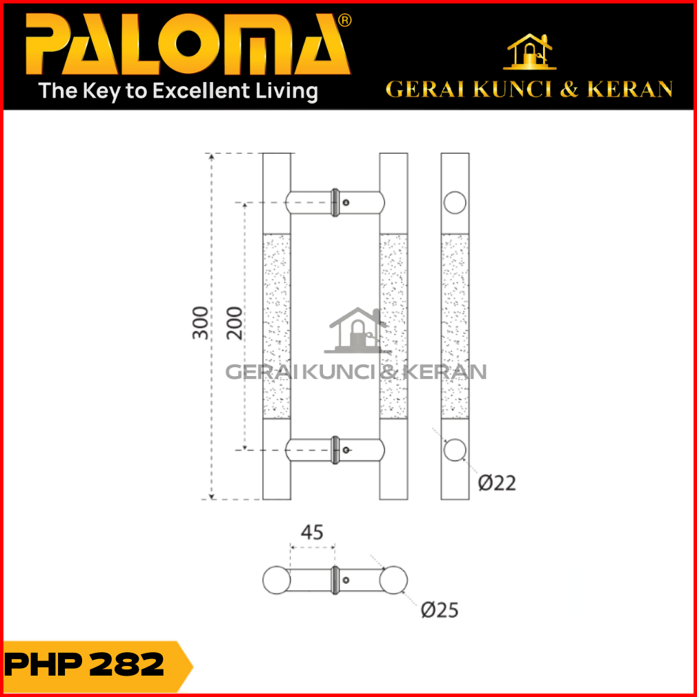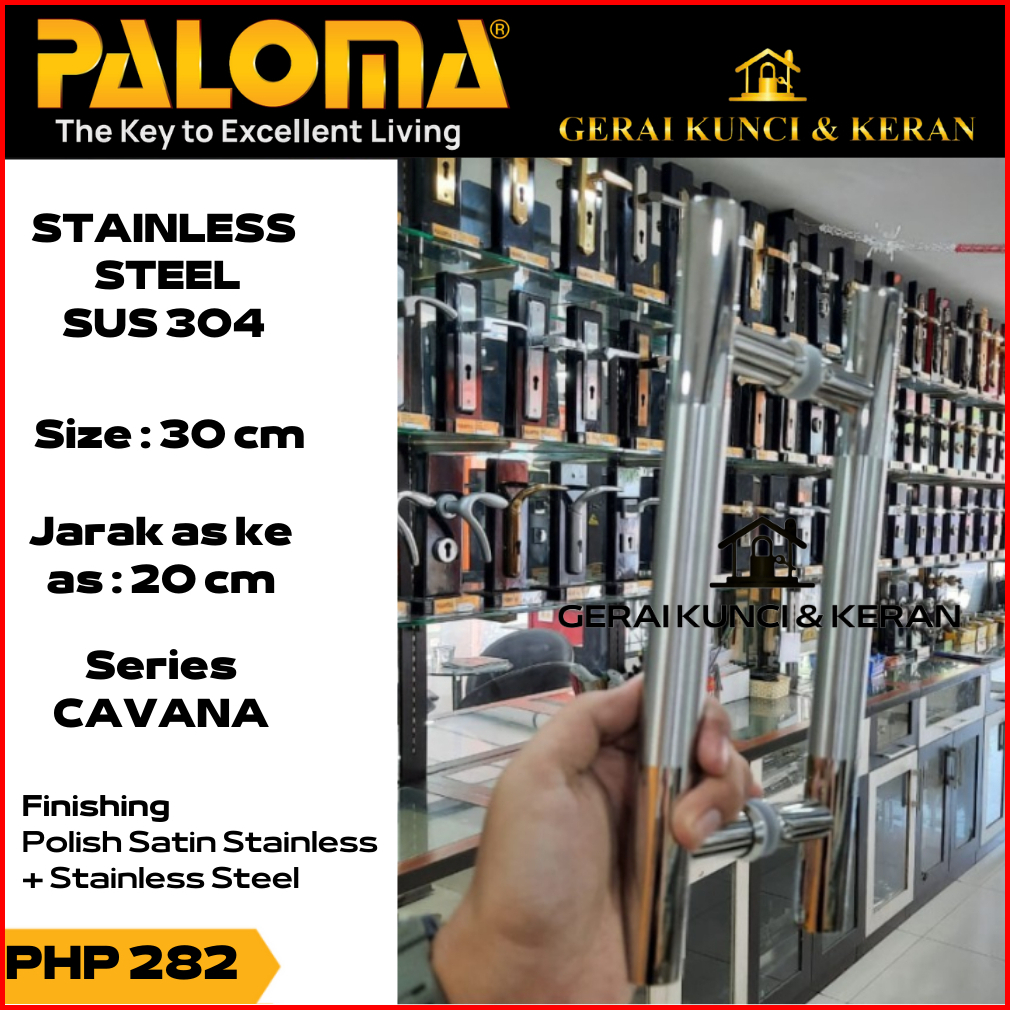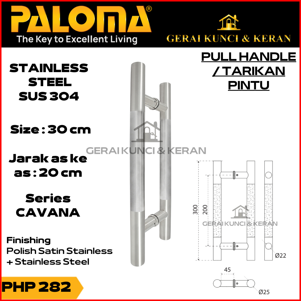Paloma Php 282 Pull Handle Tarikan Gagang Pintu N-cavana 300 Mm Stainless Steel Sus 304 Pss Sss