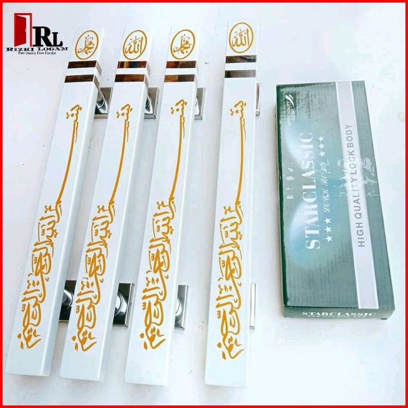 Handle Pintu Rumah Stainless Motiv Kotak Putih Kaligrafi Tarikan Pintu Motif Bismillahirrahmanirrahim Handle Pintu Panja
