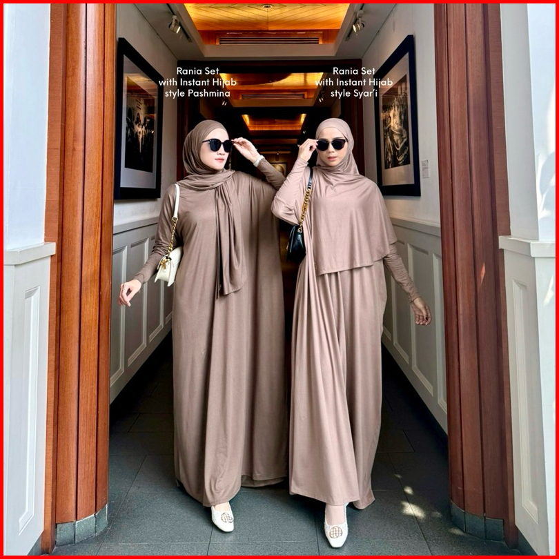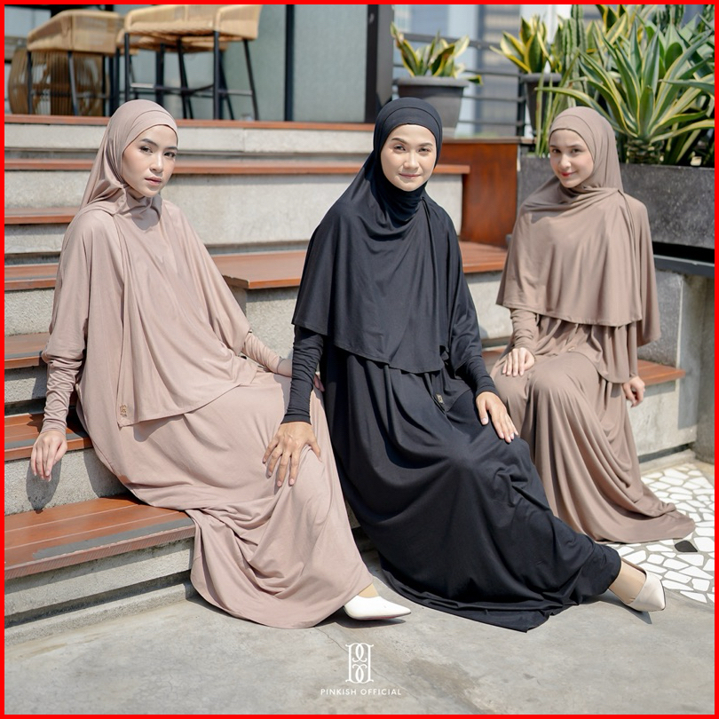 Pinkish - Rania Set Dress Abaya Hijab Bahan Cotton Rayon Spandex Import Abaya Set Umroh Dan Haji
