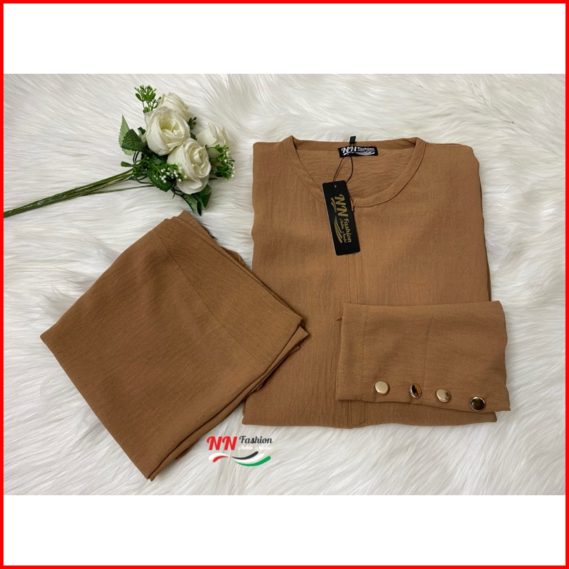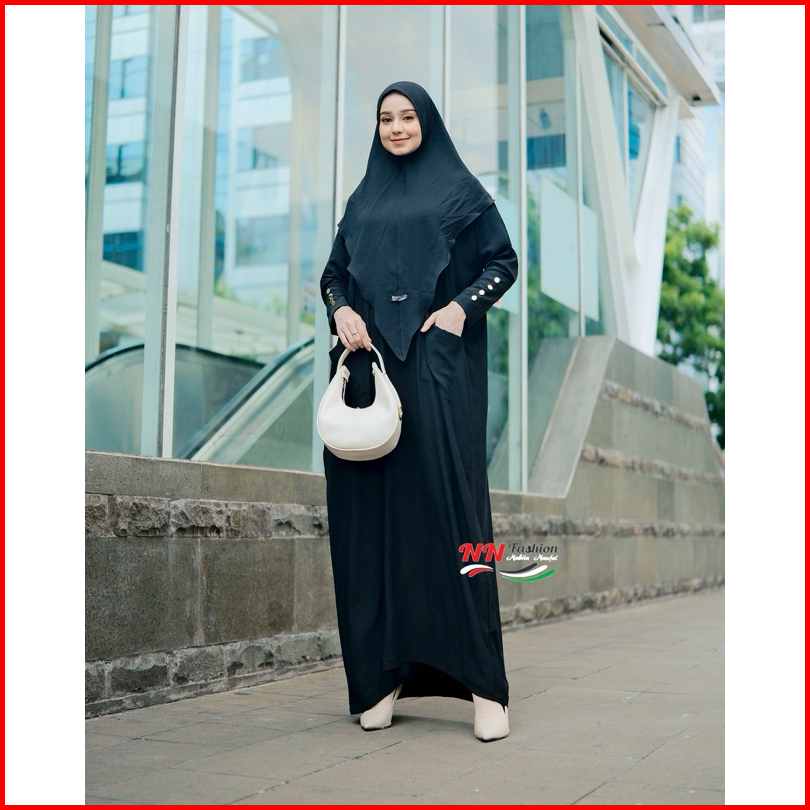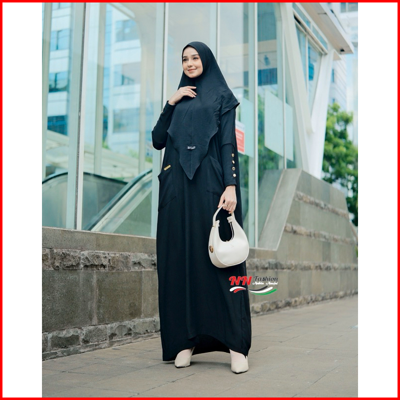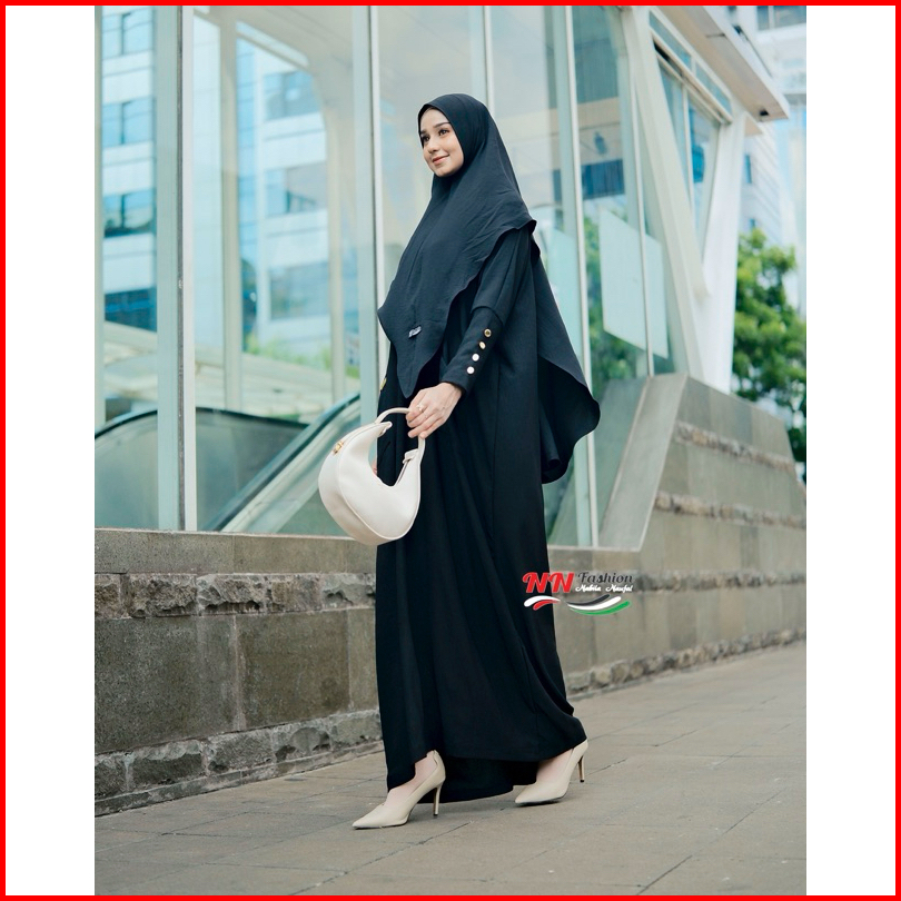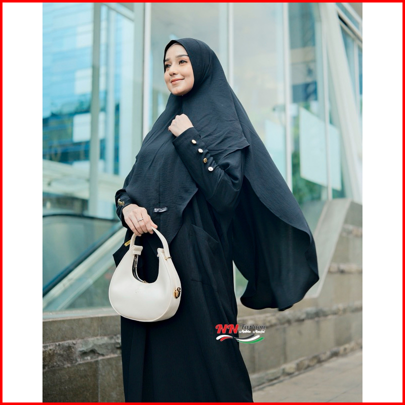 Abaya Crinkle Airplow Viona Set Khimar Syari Variasi Kancing