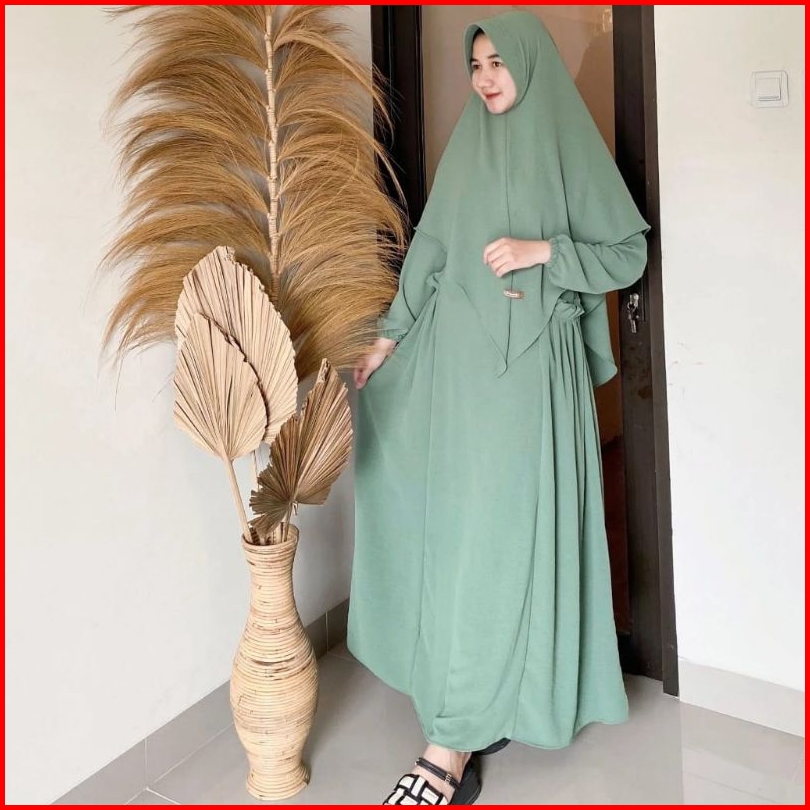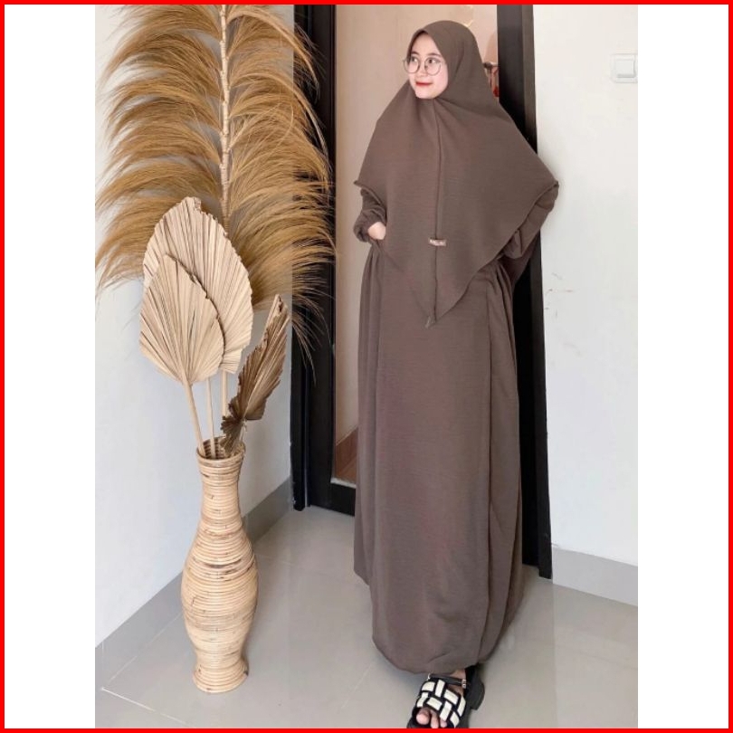 Terbaru Gamis Aisyah Syari Set Hijab Bahan Crinkle Airflow - Gamis Elegan Simple - Gamis Terbaru 2024 Viral Bisa Sergam