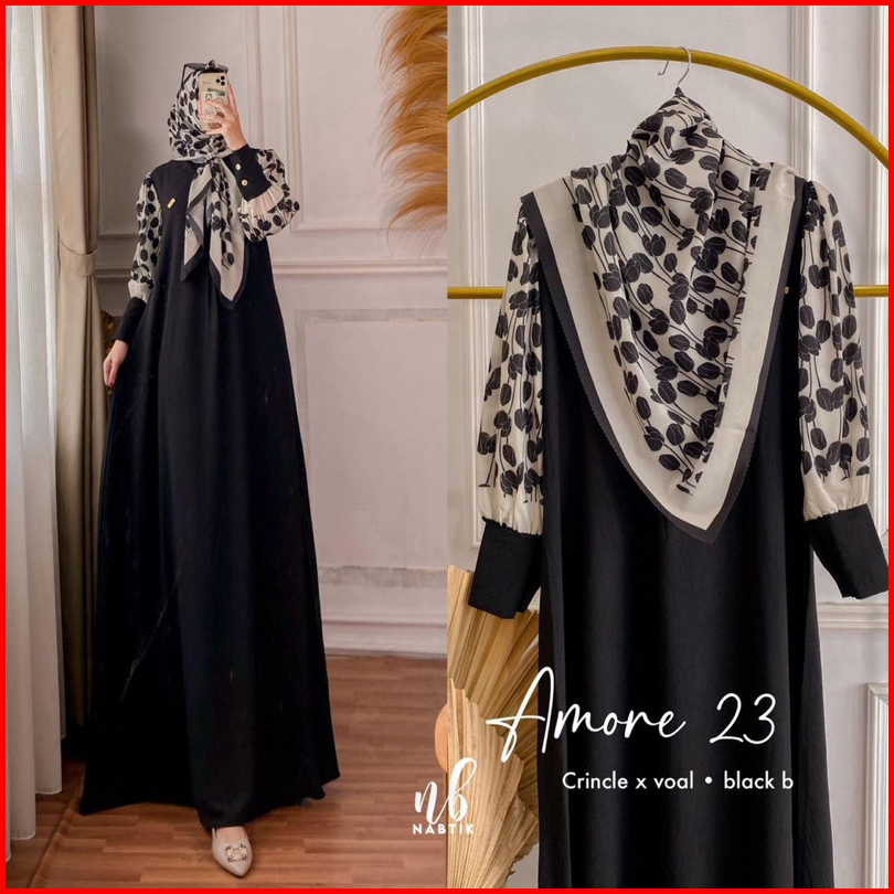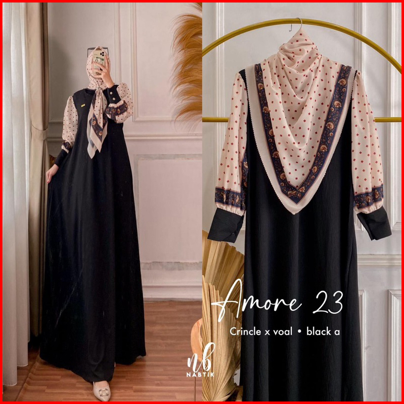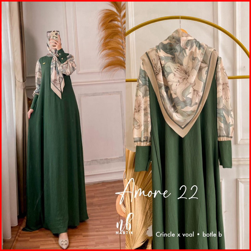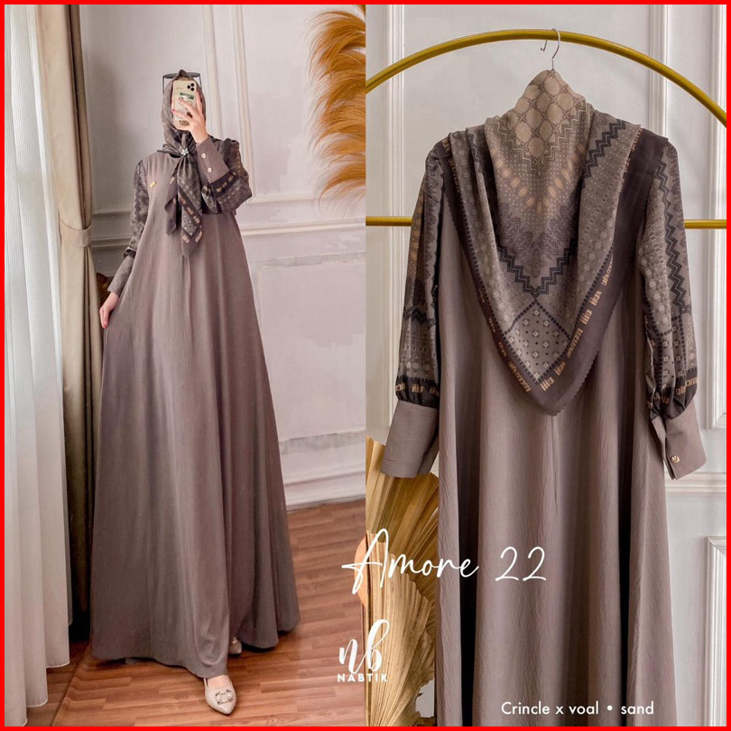 Dress Gamis Set Hijab Terbaru Amore 3 Syari Cey Airlflow Adem Original By Nabtik