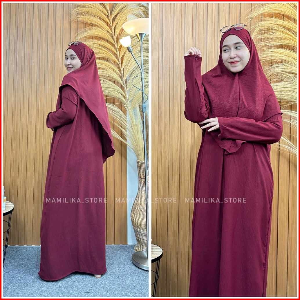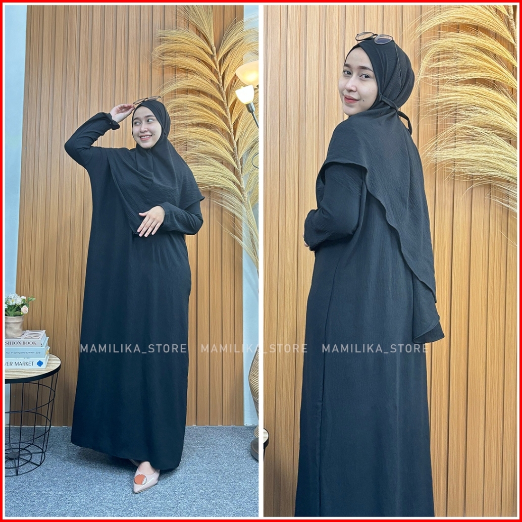 Abaya Set Kerudung Bergo Syari Crinkle Airflow