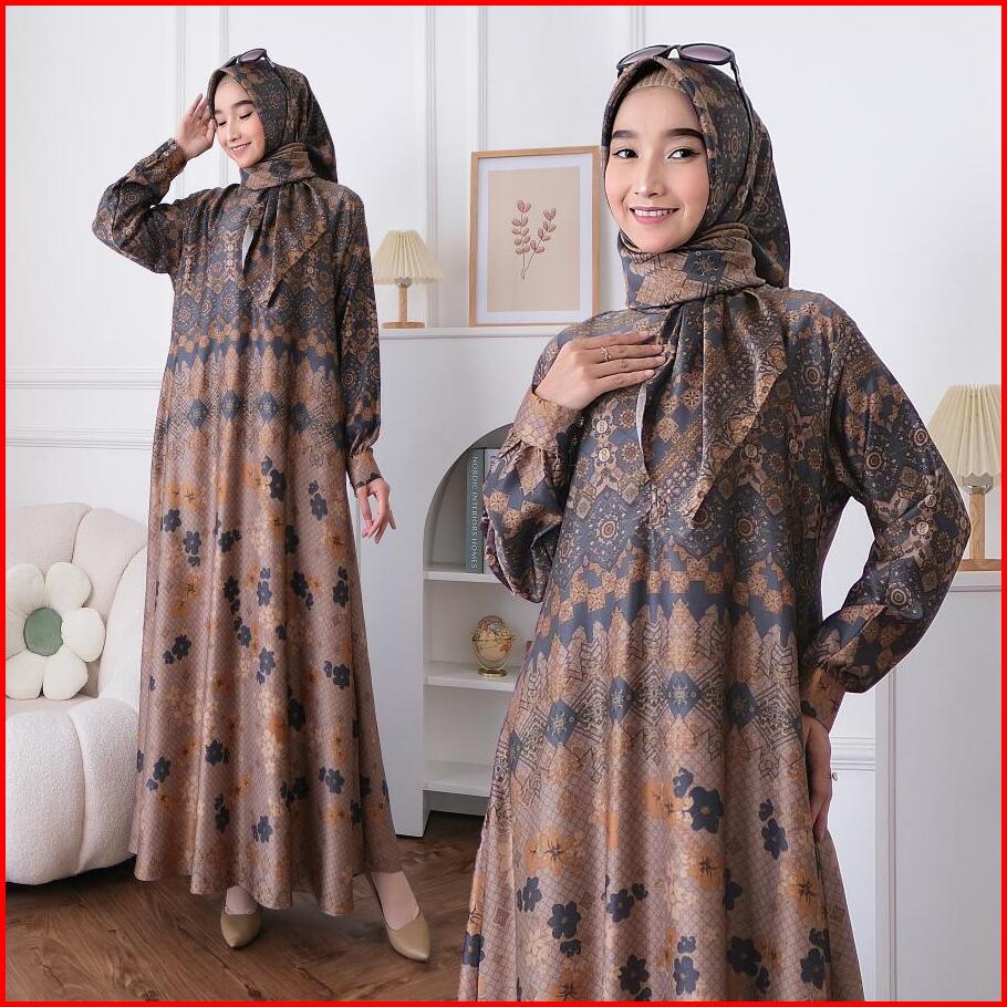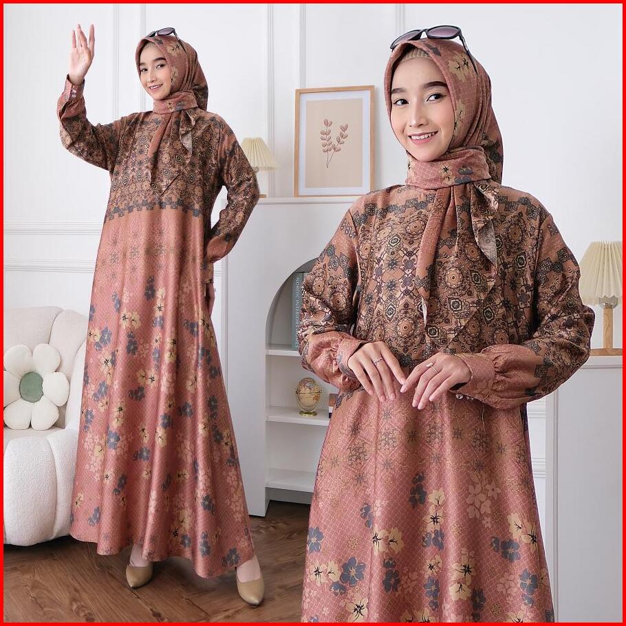 Gamis Set Hijab Terbaru 2025 Gamis Lebaran Mewah Gamis Silk Import