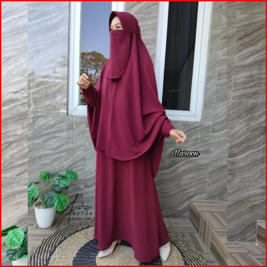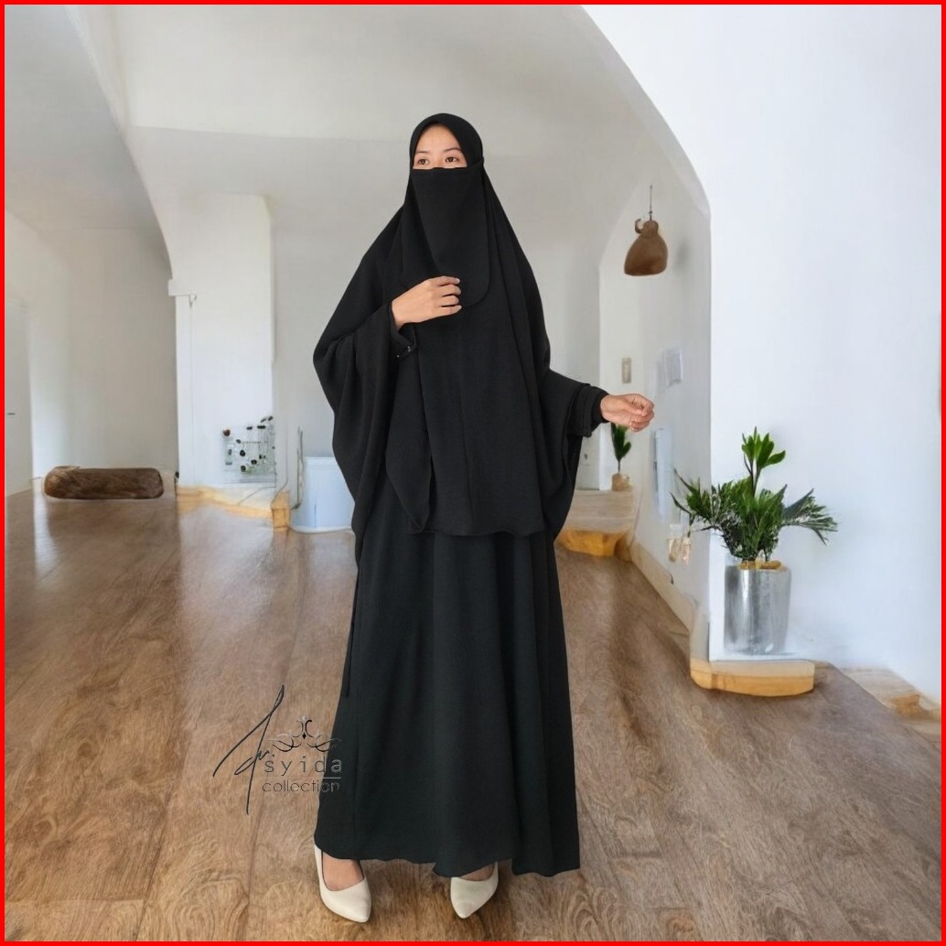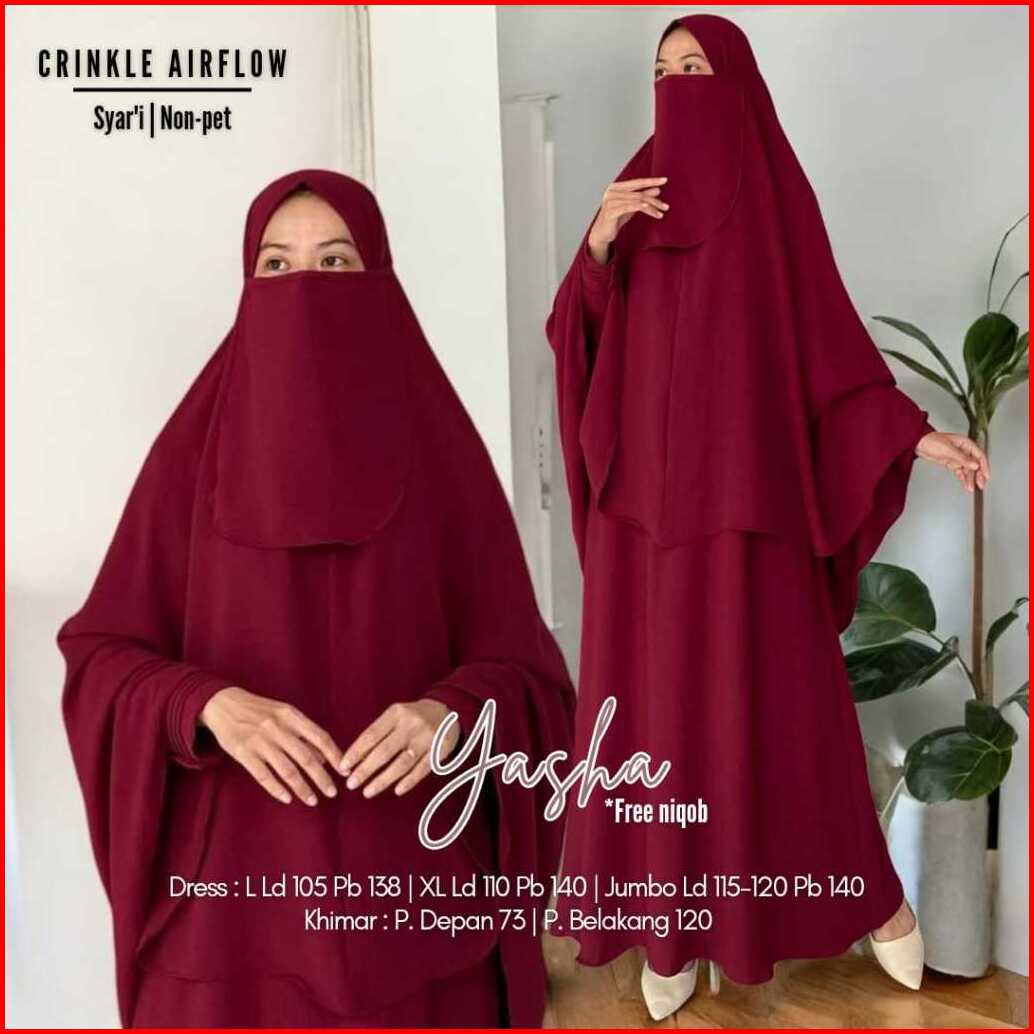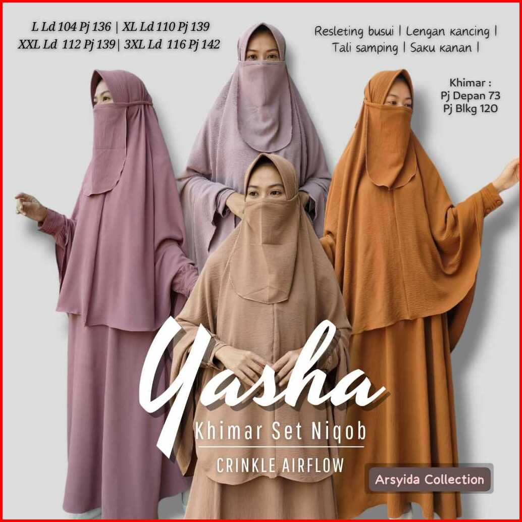 Gamis Set Hijab Plus Niqob Cadar Jumbo Busui Yasha Abaya Set Syar I Terbaru